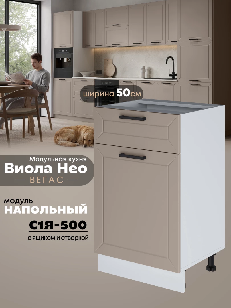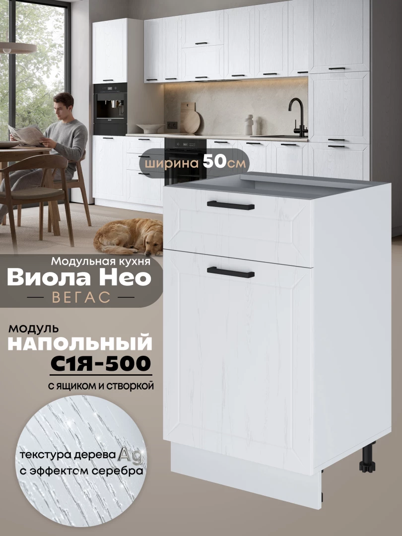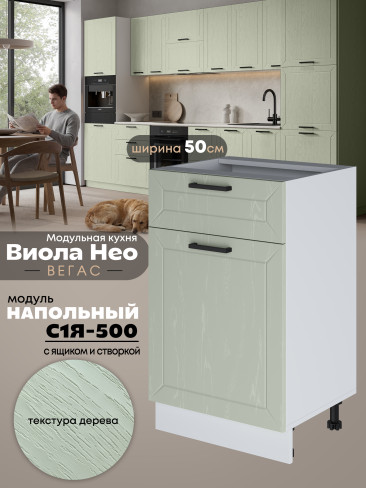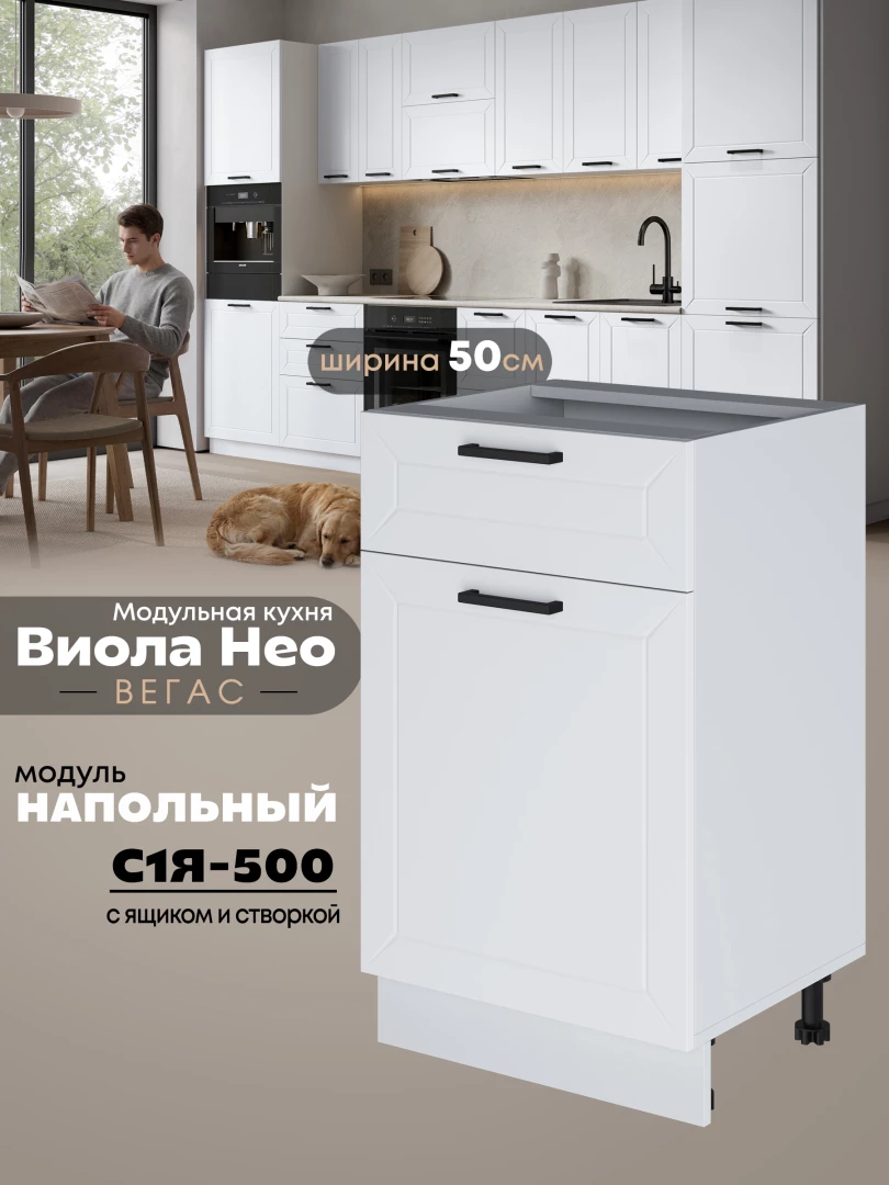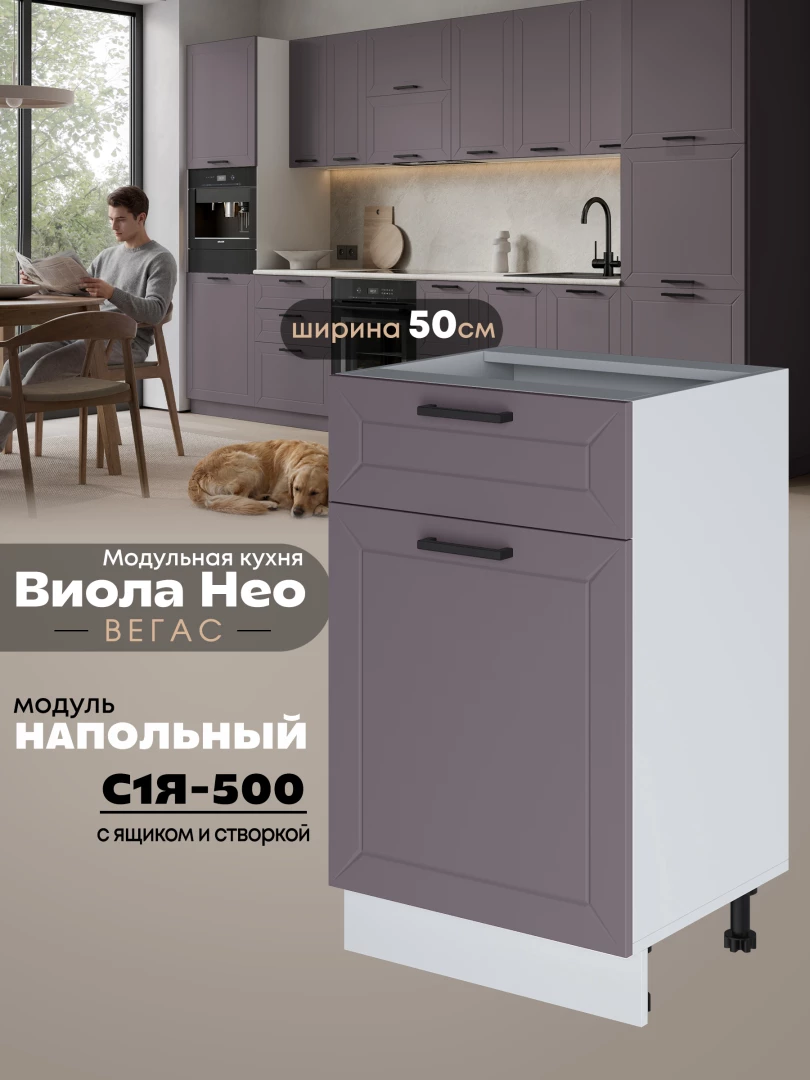 Кухонный модуль напольный с выдвижным ящиком и створкой Виола Нео Вегас С1Я-500 Матовый