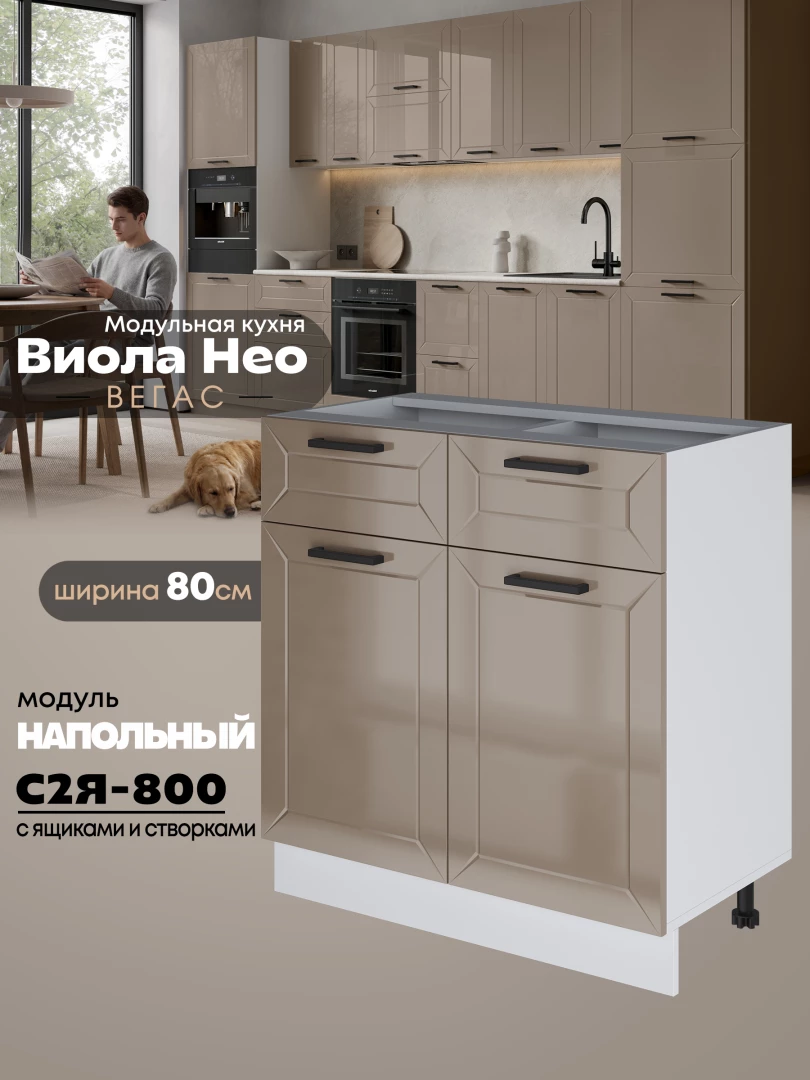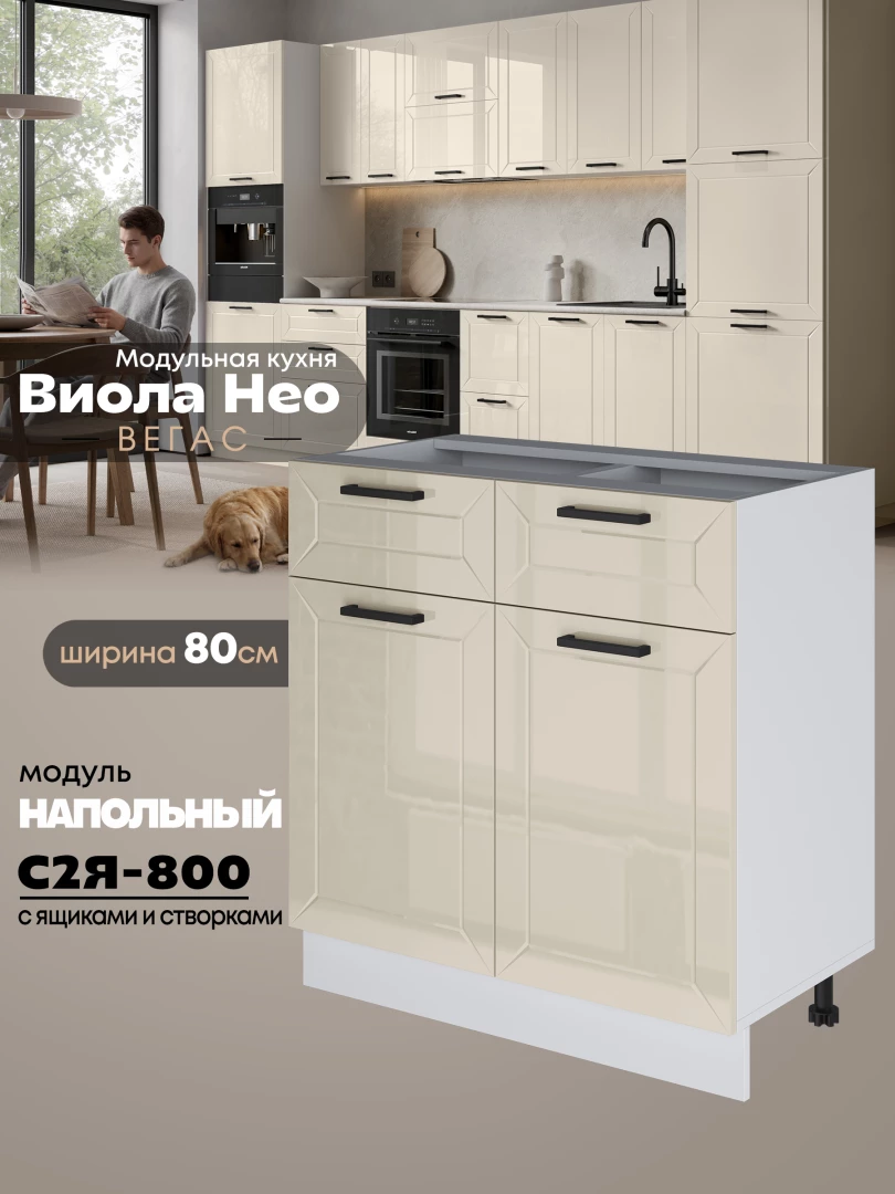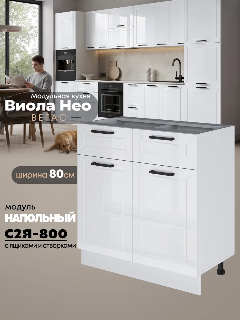 Кухонный модуль напольный с выдвижными ящиками и створками Виола Нео Вегас С2Я-800 Глянцевый