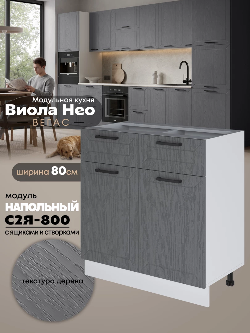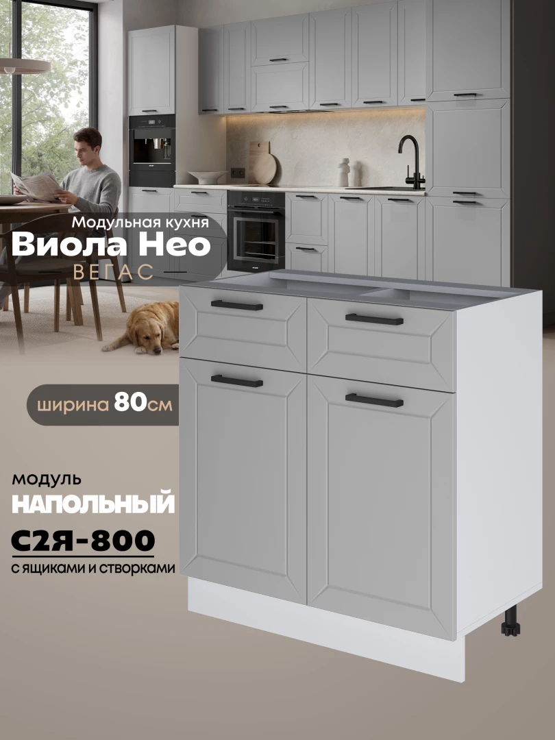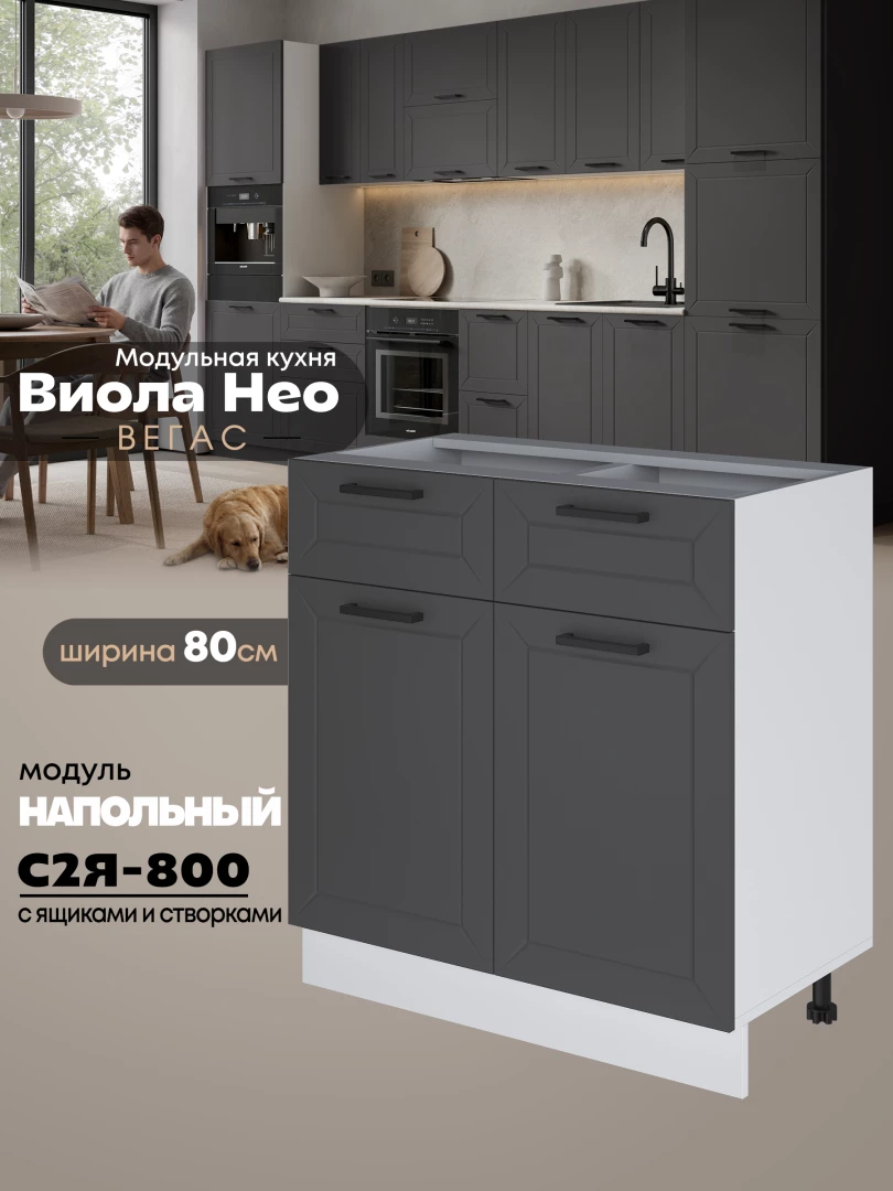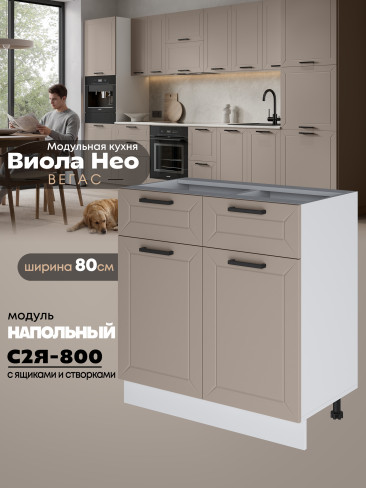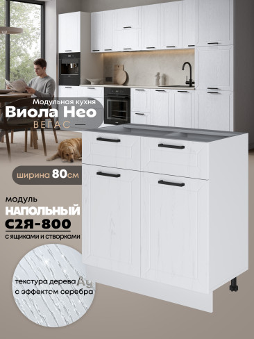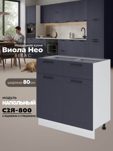 Кухонный модуль напольный с выдвижными ящиками и створками Виола Нео Вегас С2Я-800 Матовый