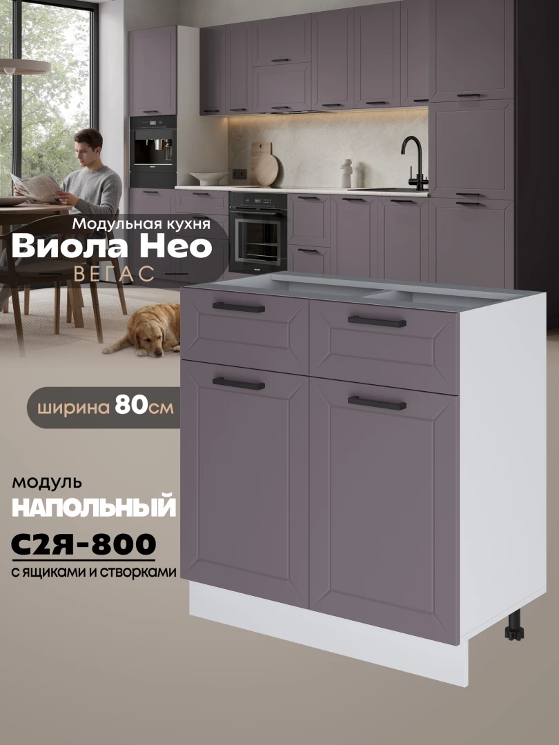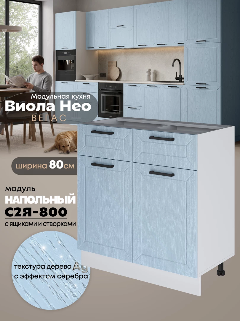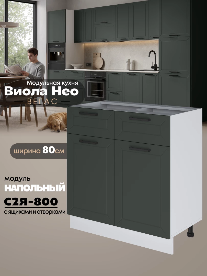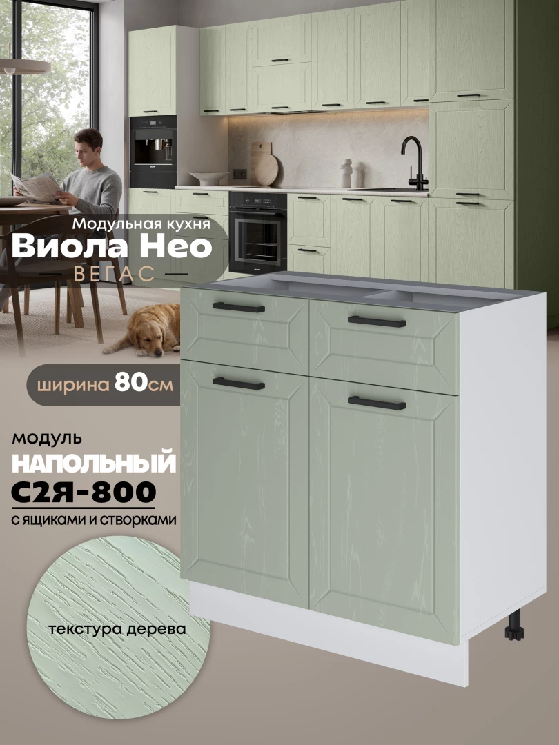 Кухонный модуль напольный с выдвижными ящиками и створками Виола Нео Вегас С2Я-800 Матовый