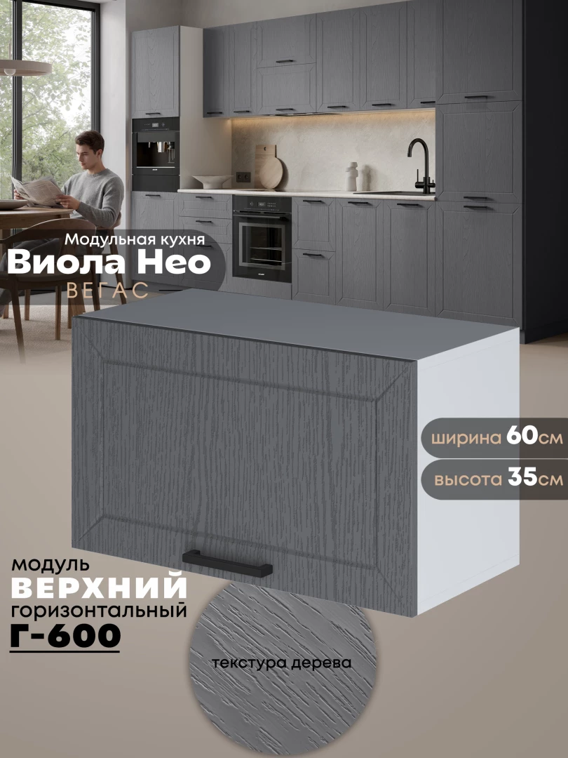Кухонный модуль навесной горизонтальный (антресоль) Виола Нео Вегас Г-600 Матовый