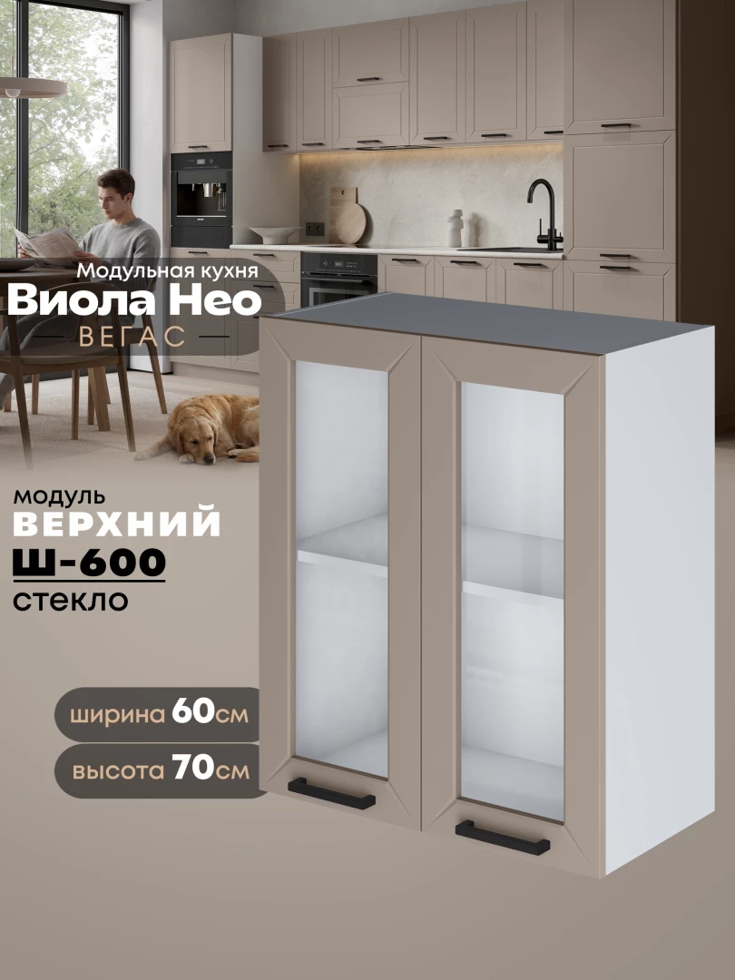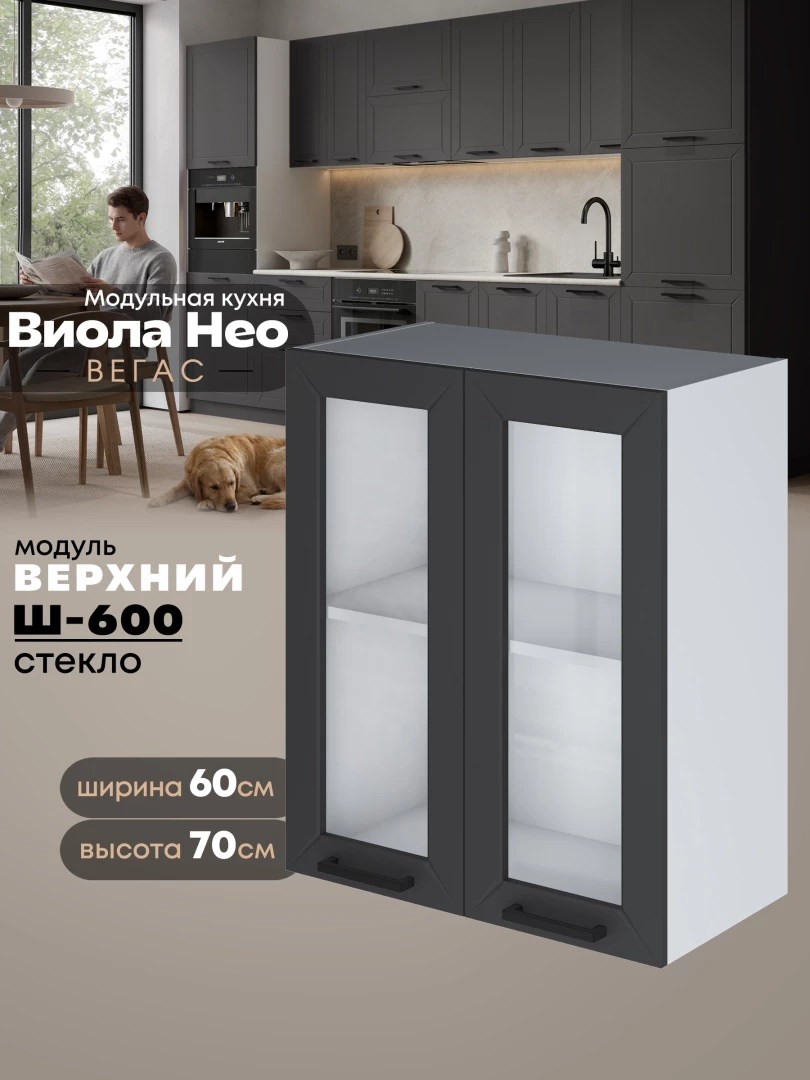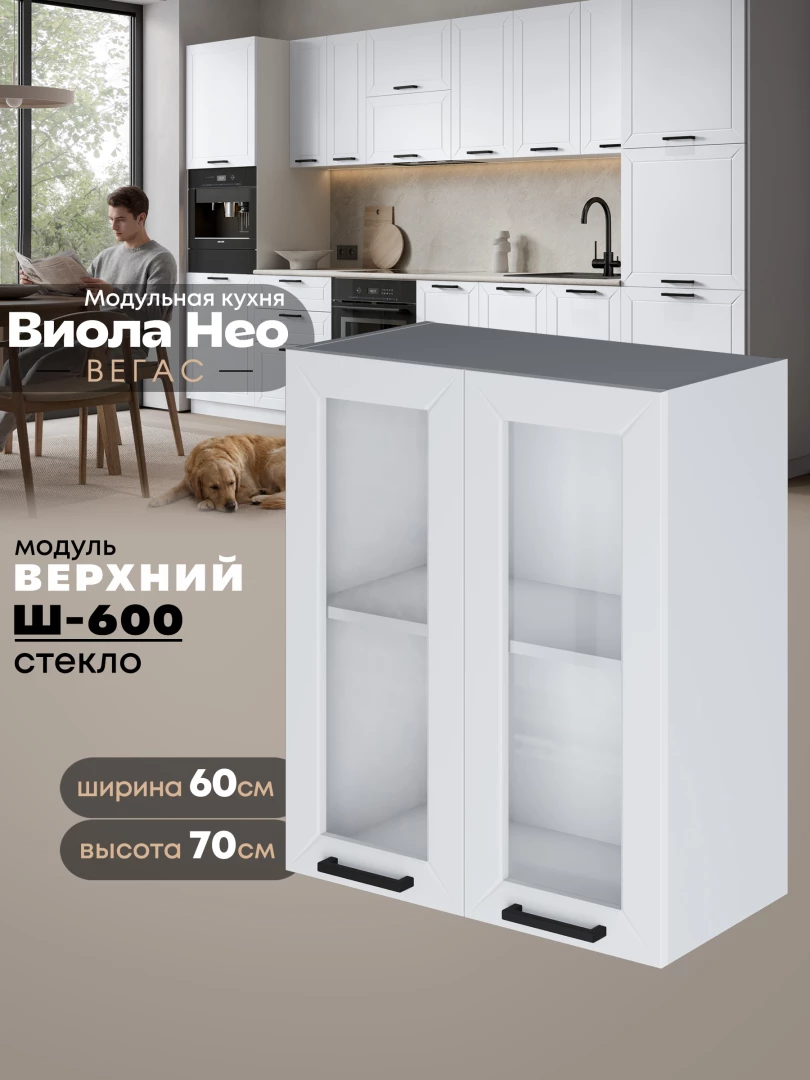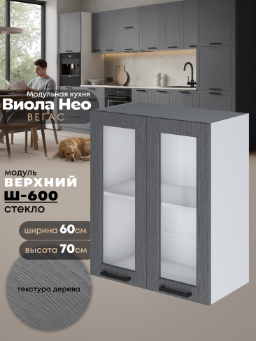 Кухонный модуль навесной с двумя створками Виола Нео Вегас Ш-600-стекло Матовый