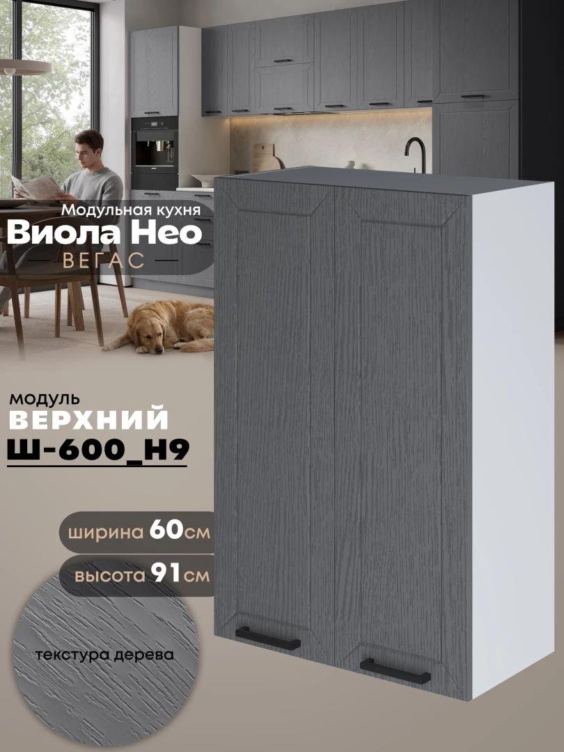Кухонный модуль навесной с двумя створками Виола Нео Вегас Ш-600(Н9) Матовый