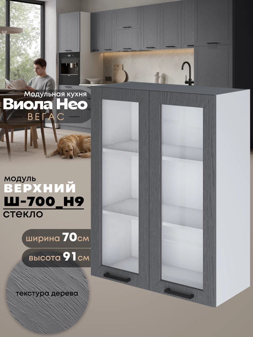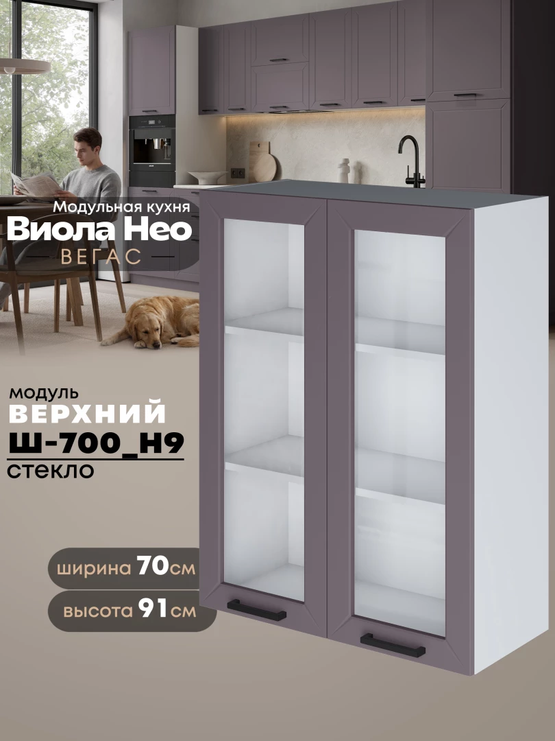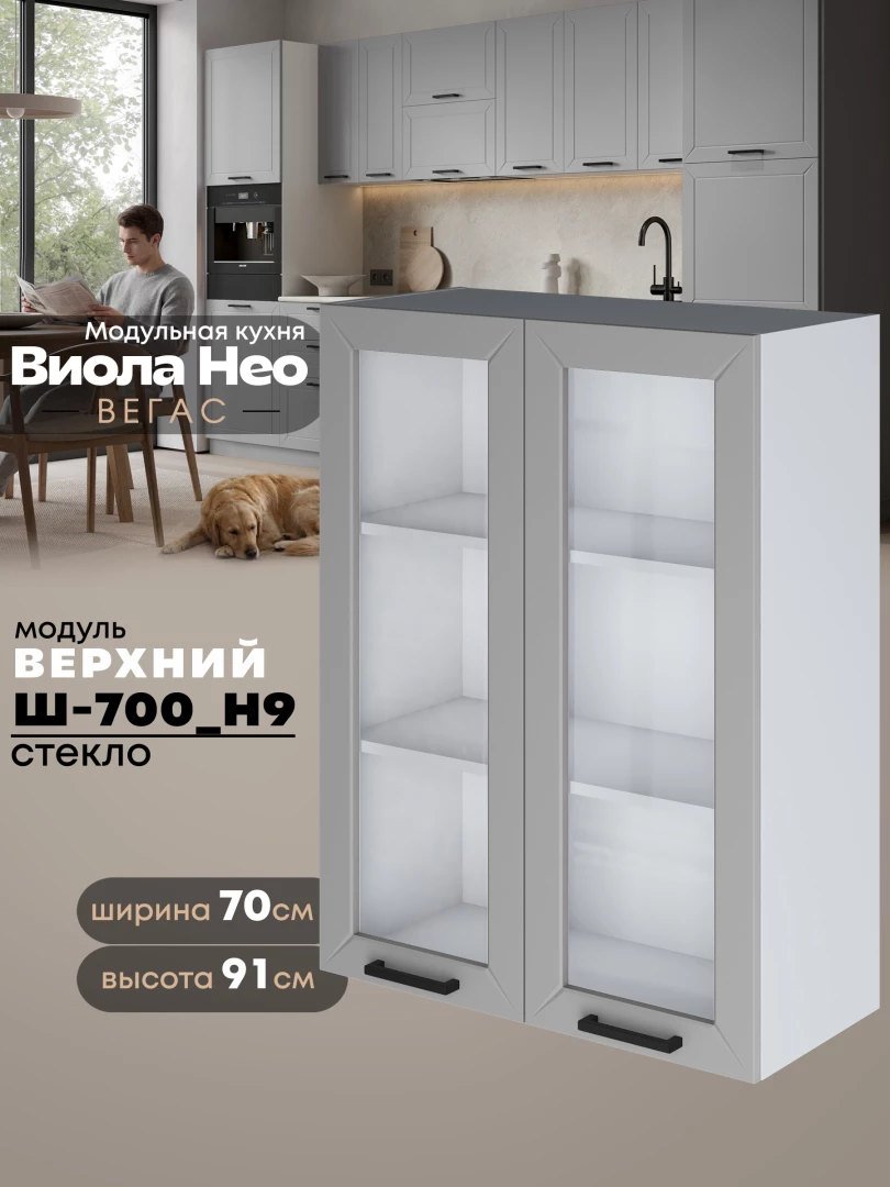 Кухонный модуль навесной с двумя створками Виола Нео Вегас Ш-700(Н9)-стекло Матовый