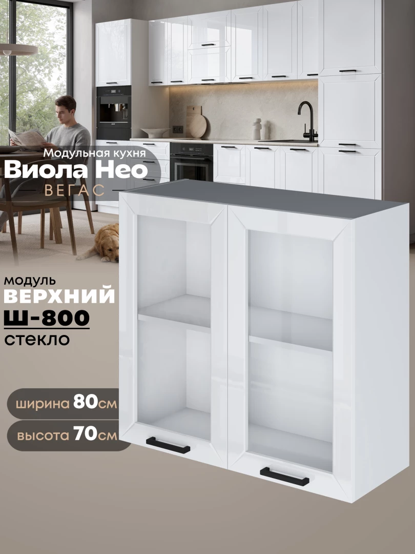Кухонный модуль навесной с двумя створками Виола Нео Вегас Ш-800-стекло Глянцевый
