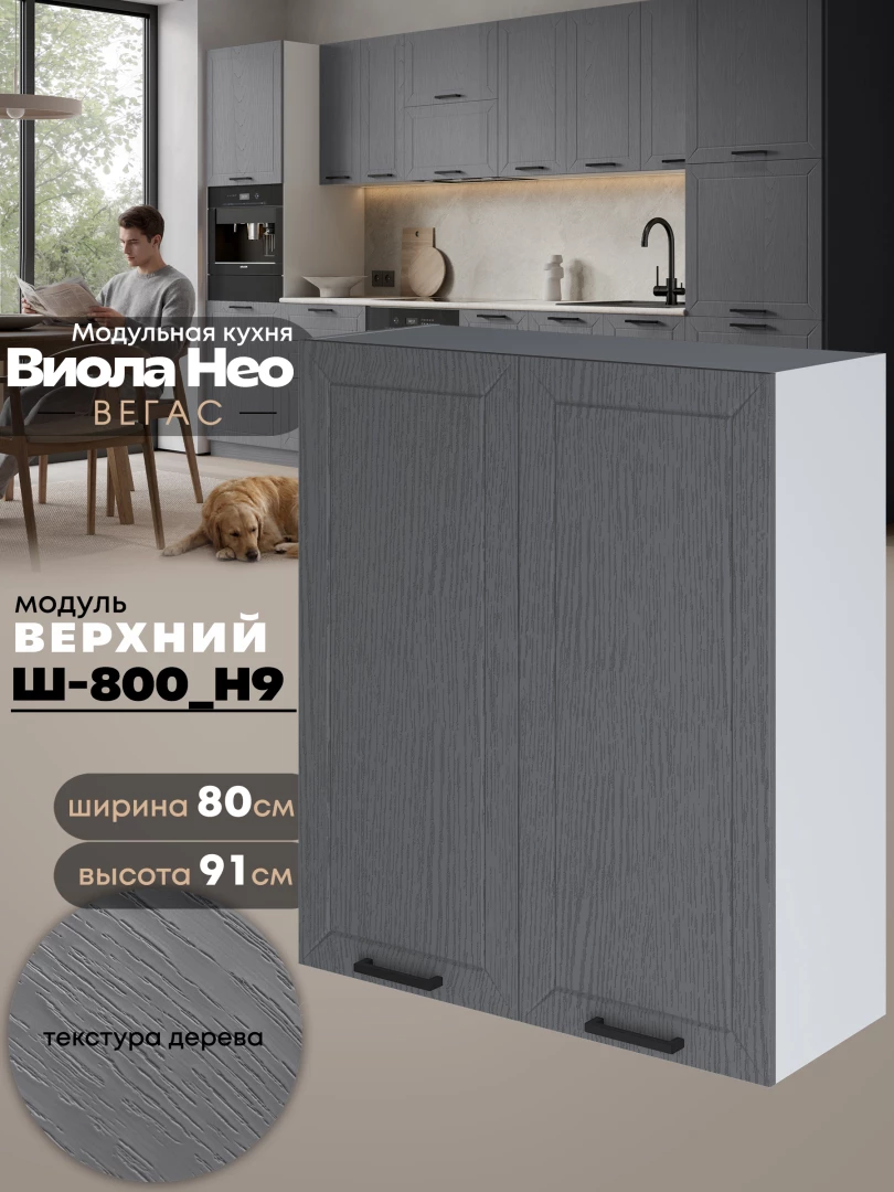 Кухонный модуль навесной с двумя створками Виола Нео Вегас Ш-800(Н9) Матовый