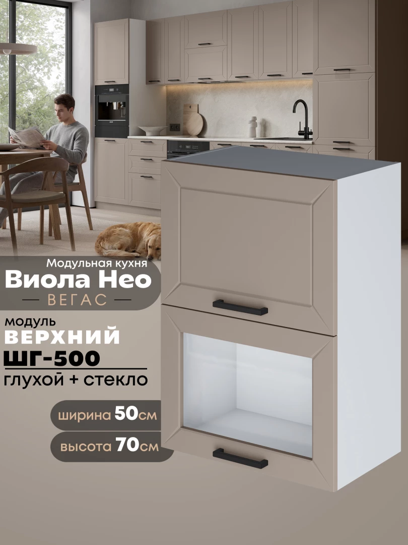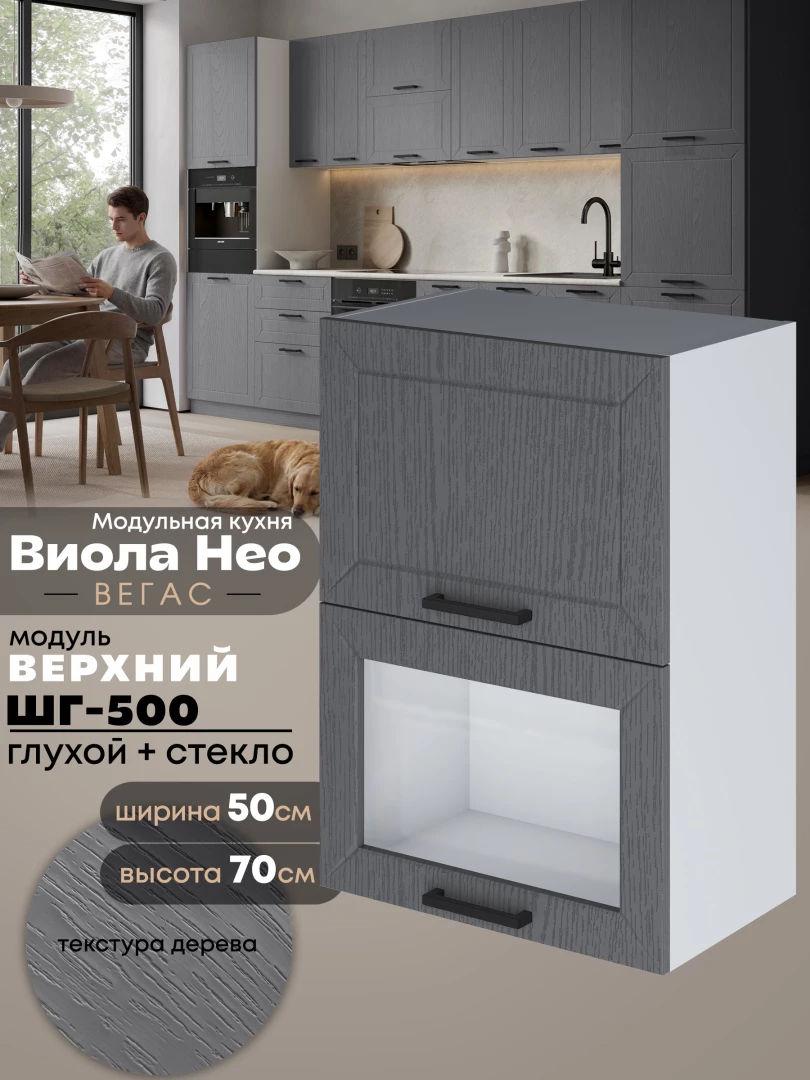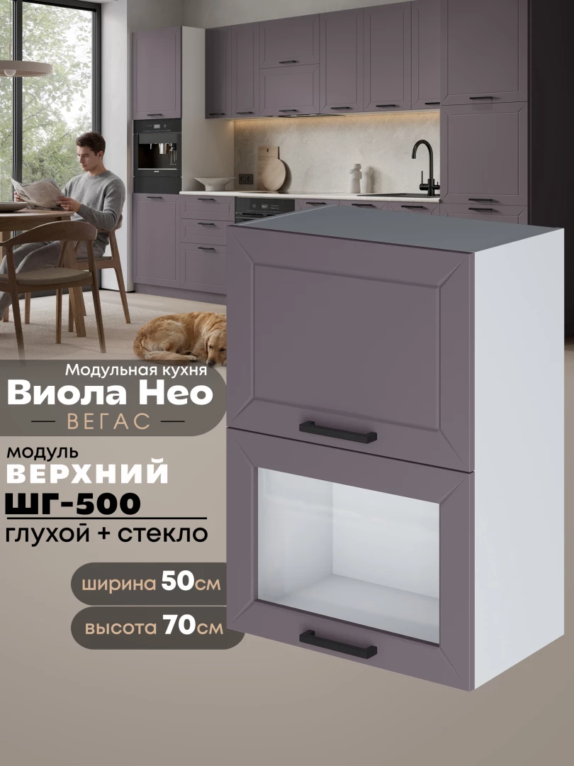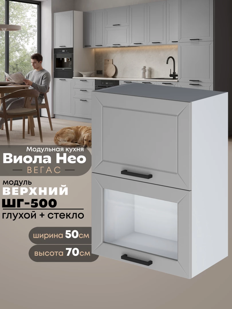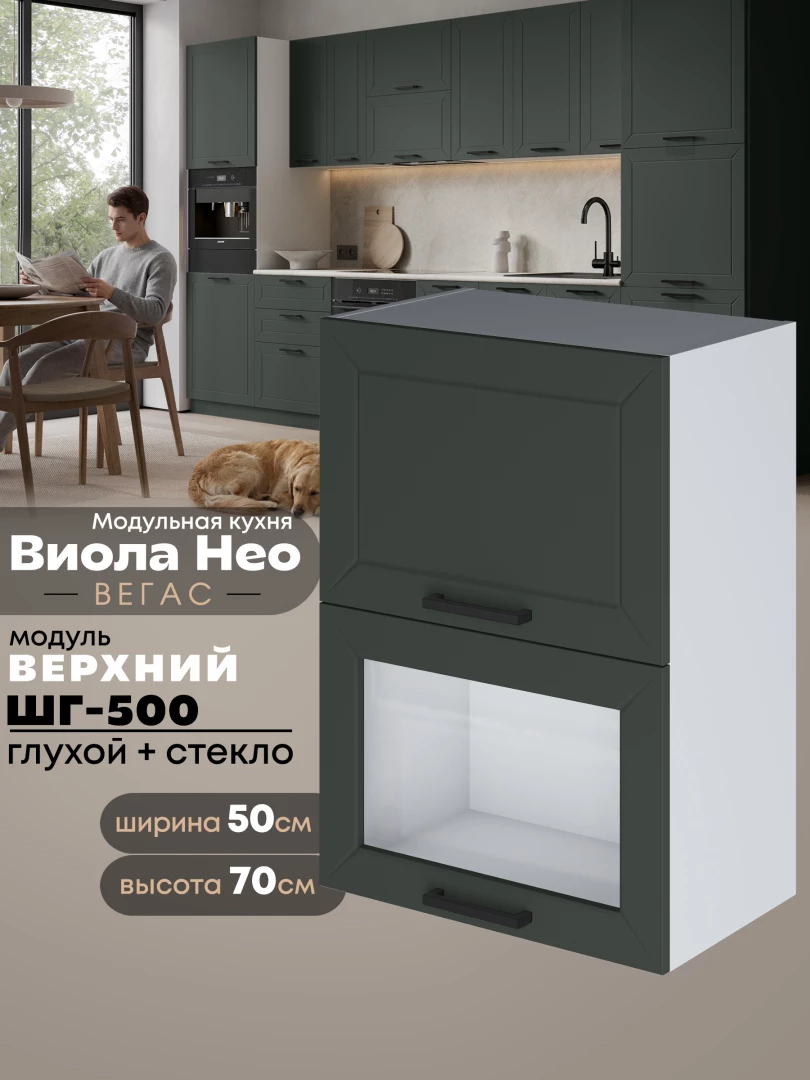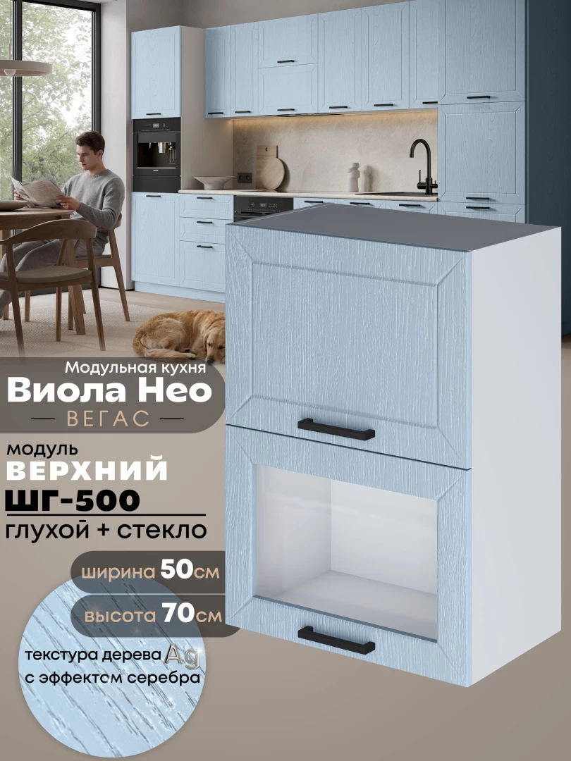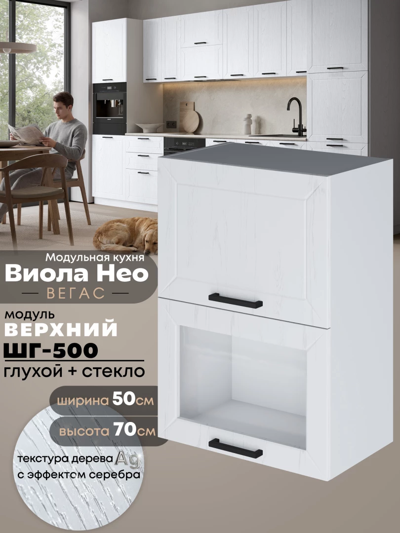 Кухонный модуль навесной с откидными створками Виола Нео Вегас ШГ-500 (глухой/стекло) Матовый