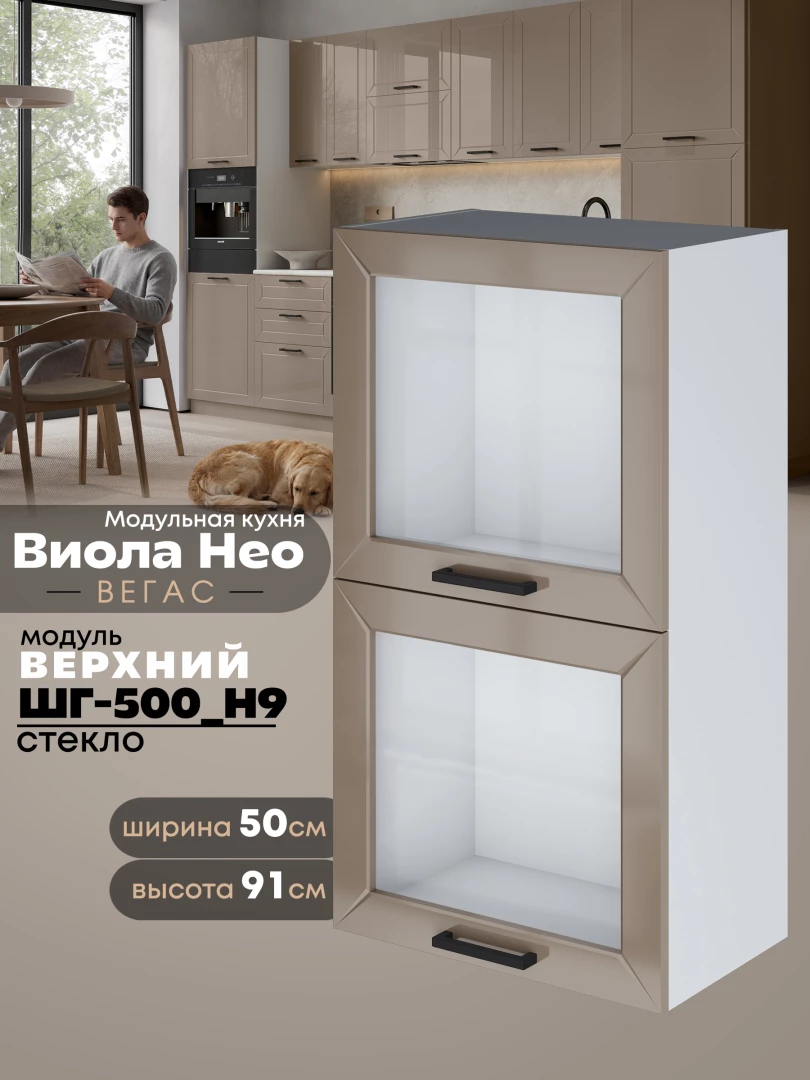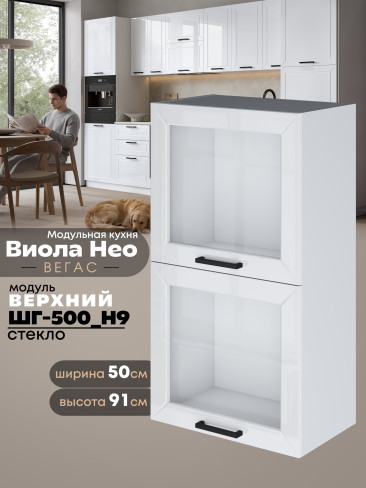 Кухонный модуль навесной с откидными створками Виола Нео Вегас ШГ-500(Н9)-стекло Глянцевый