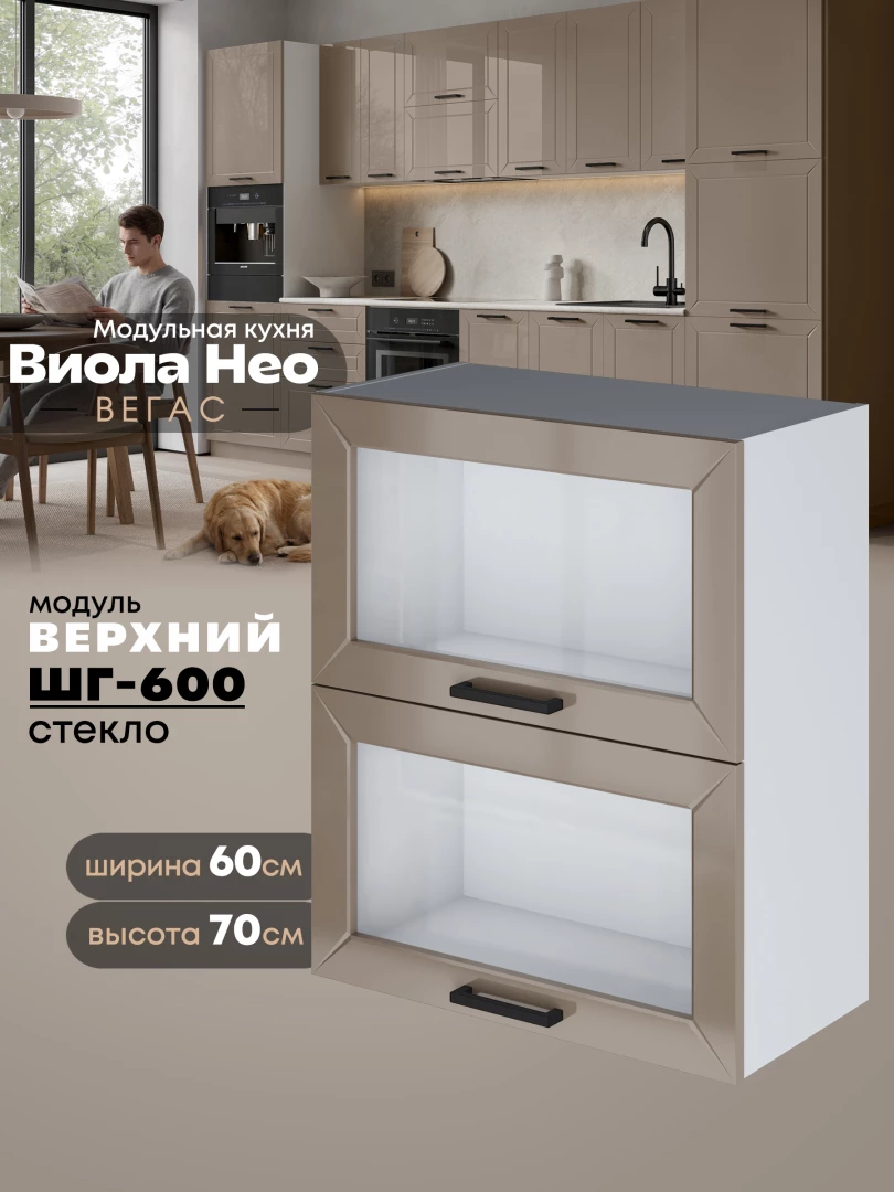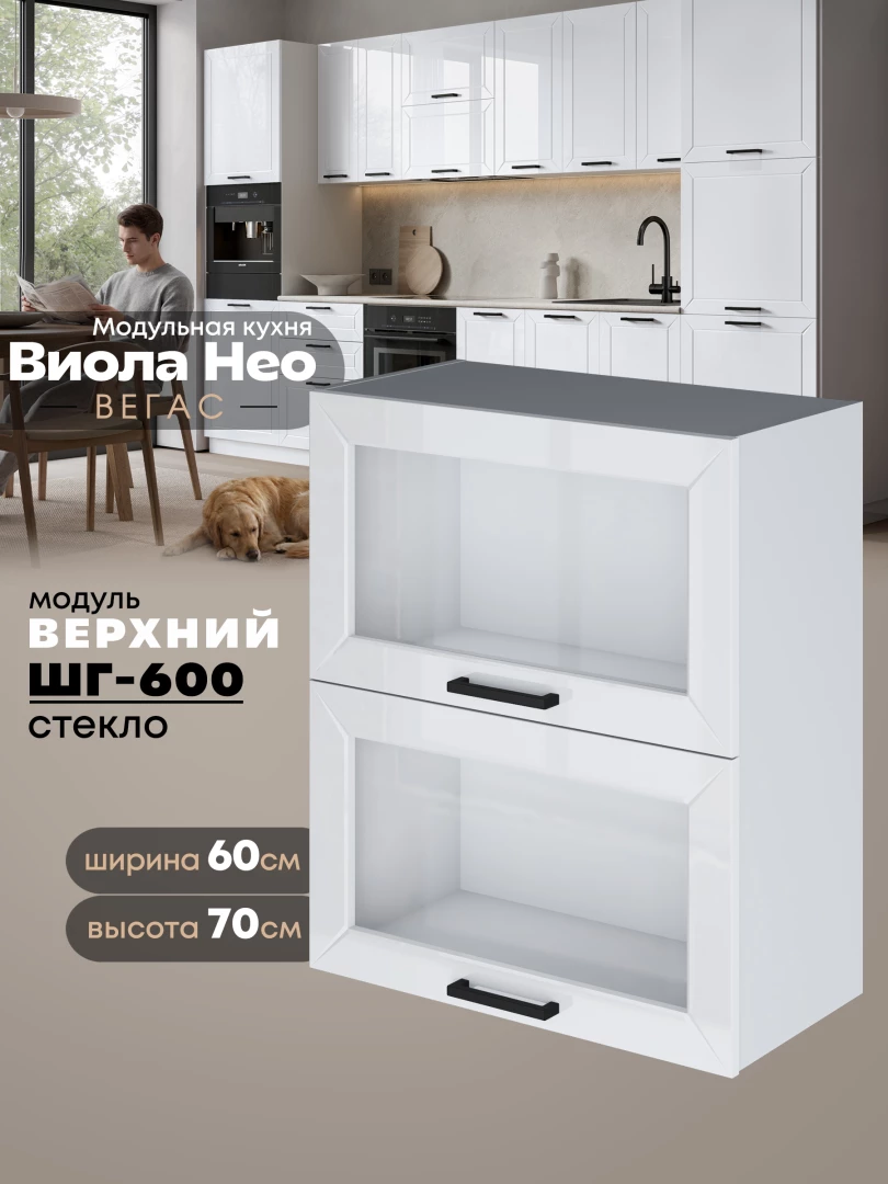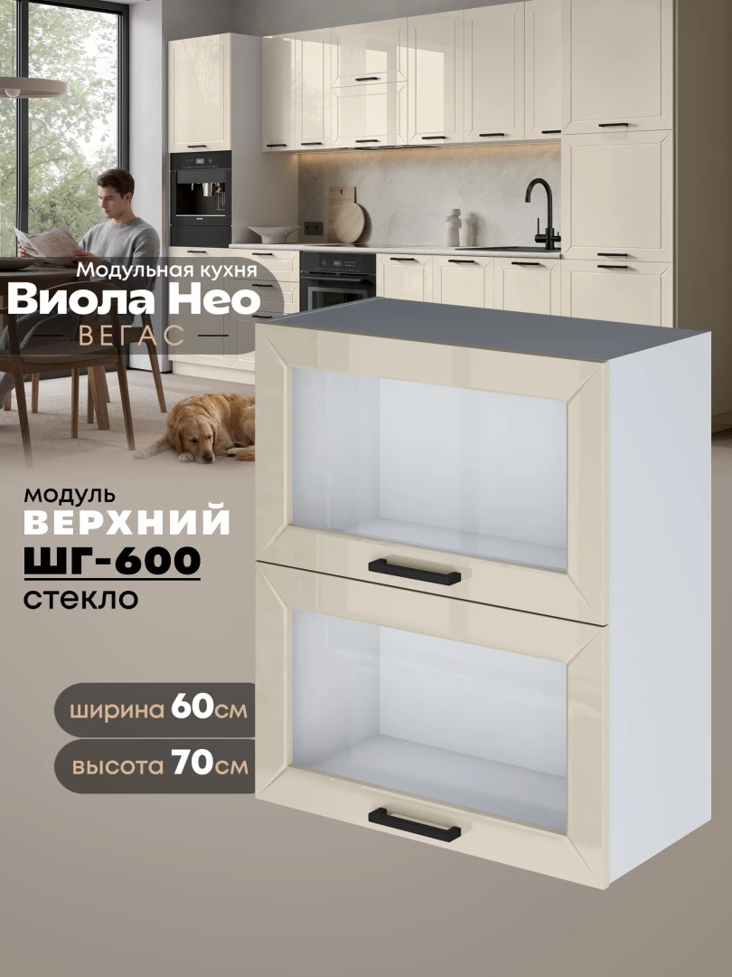 Кухонный модуль навесной с откидными створками Виола Нео Вегас ШГ-600-стекло Глянцевый