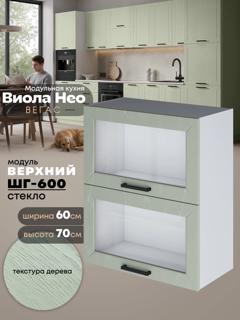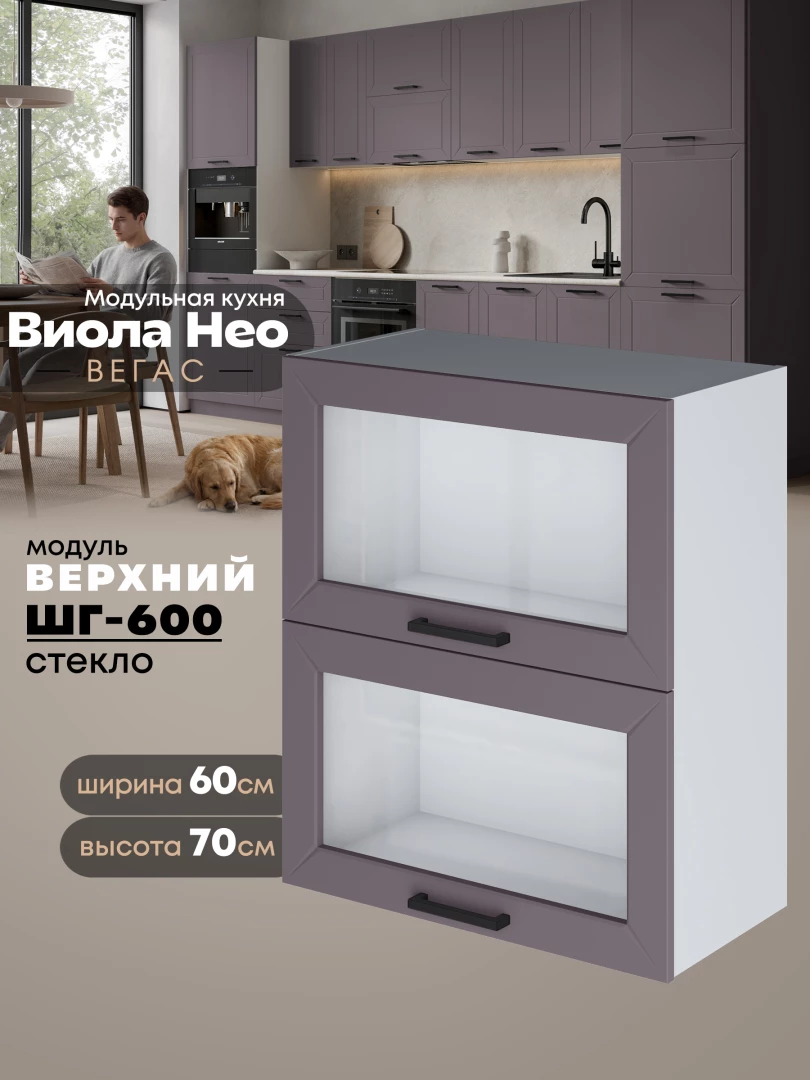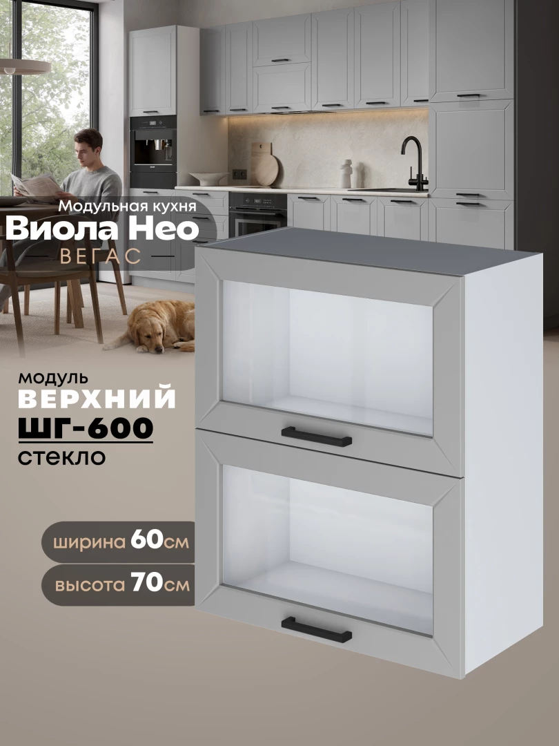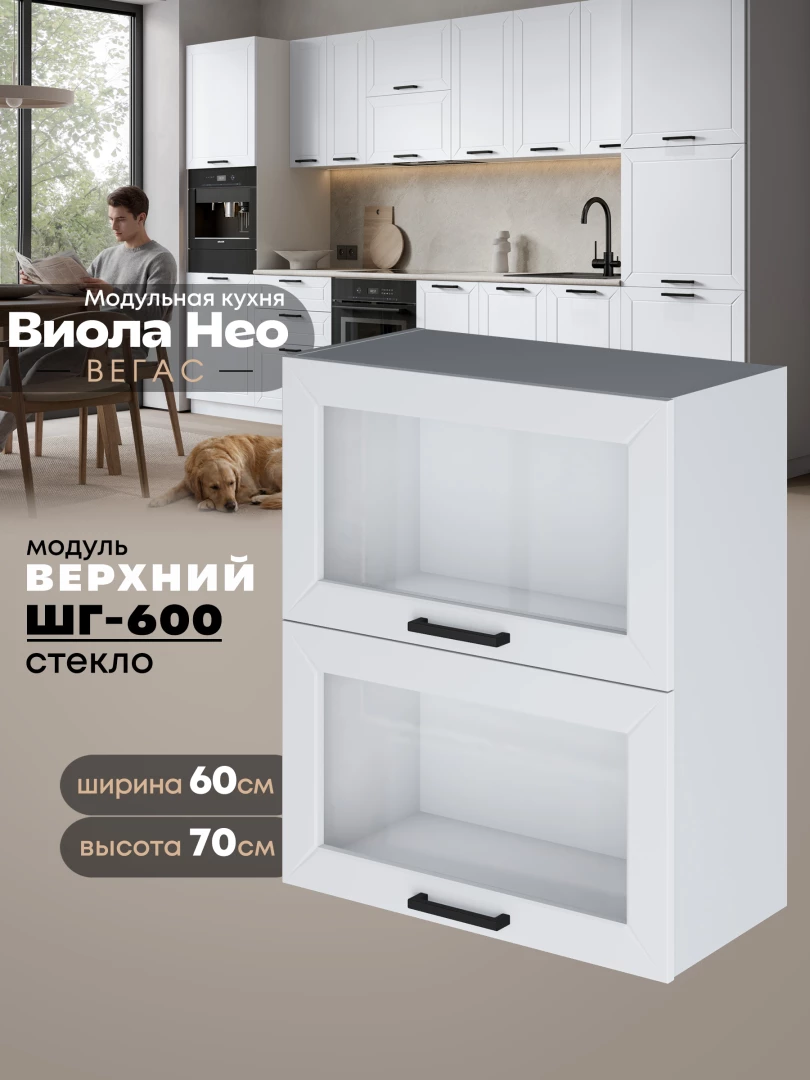 Кухонный модуль навесной с откидными створками Виола Нео Вегас ШГ-600-стекло Матовый