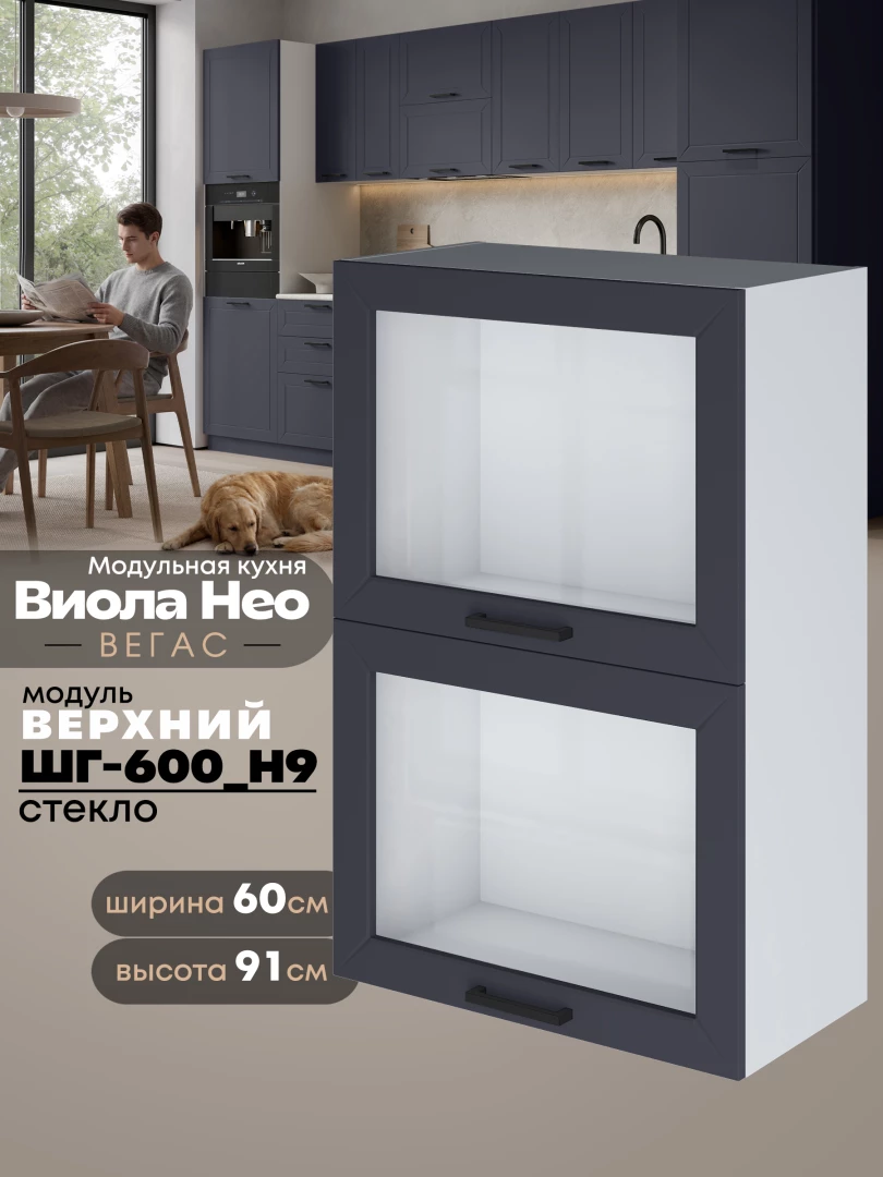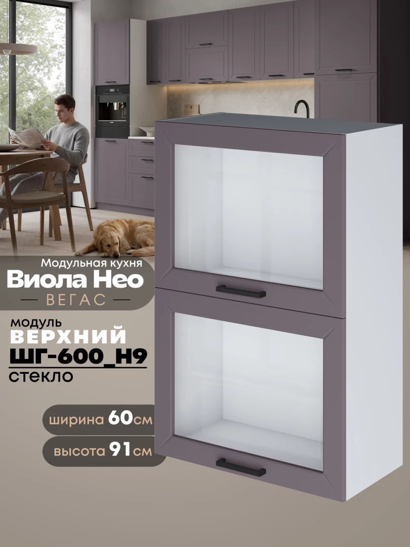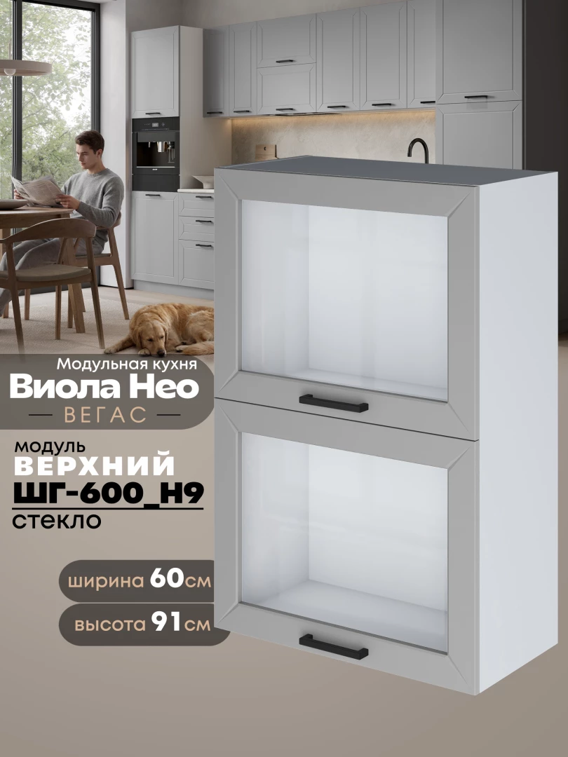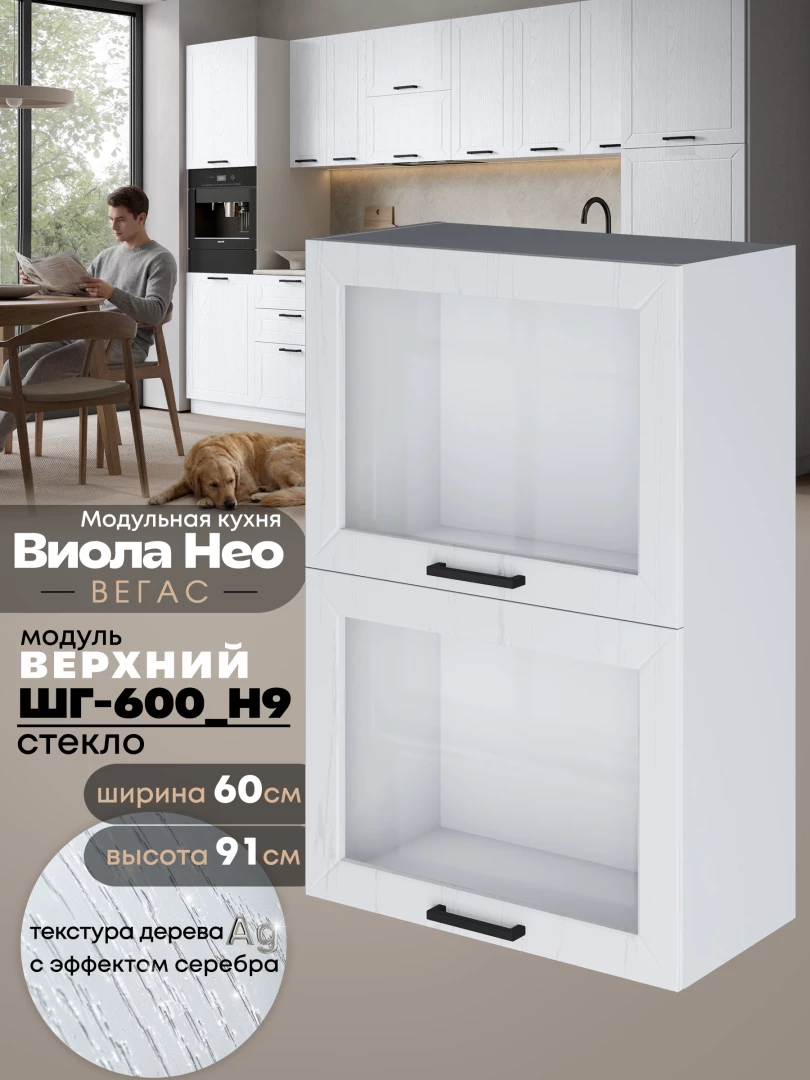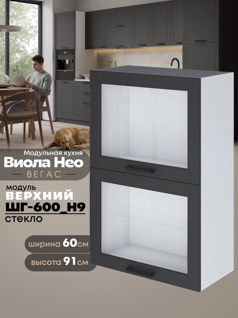 Кухонный модуль навесной с откидными створками Виола Нео Вегас ШГ-600(Н9)-стекло Матовый