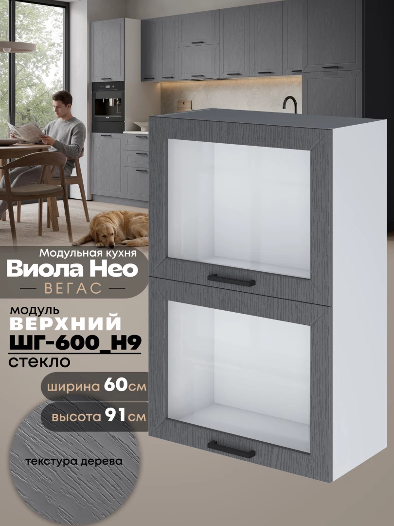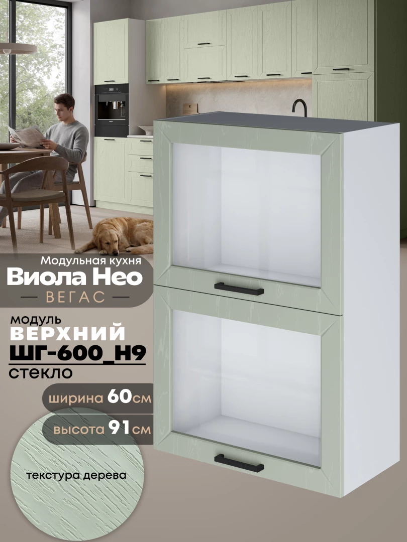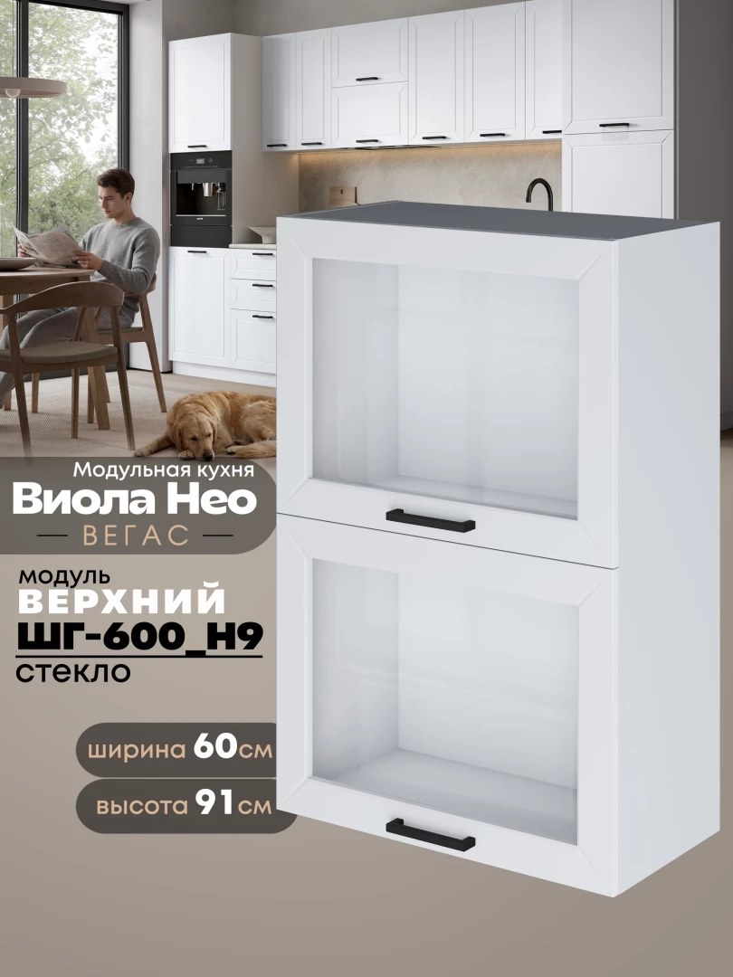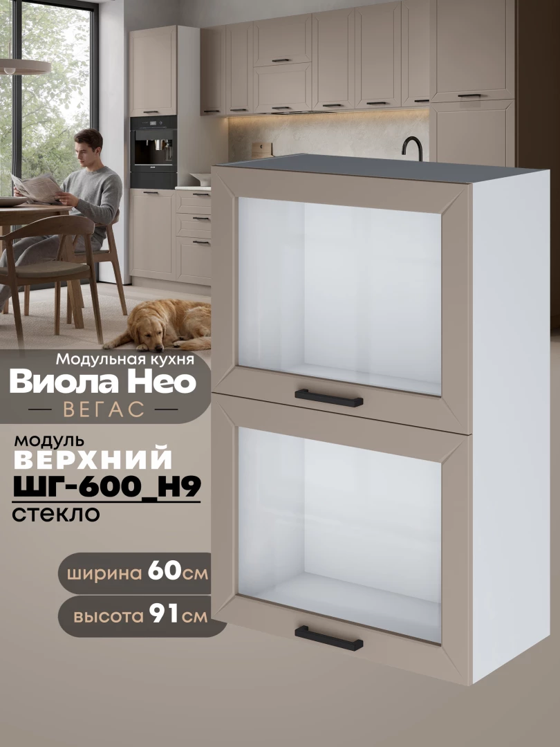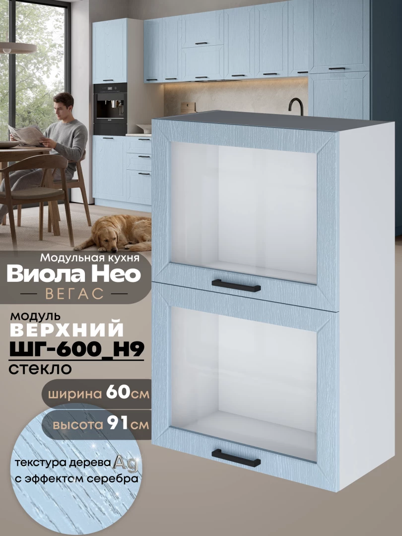 Кухонный модуль навесной с откидными створками Виола Нео Вегас ШГ-600(Н9)-стекло Матовый