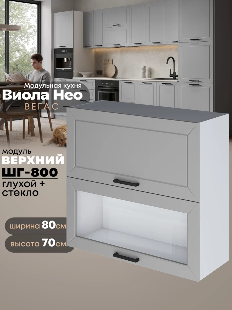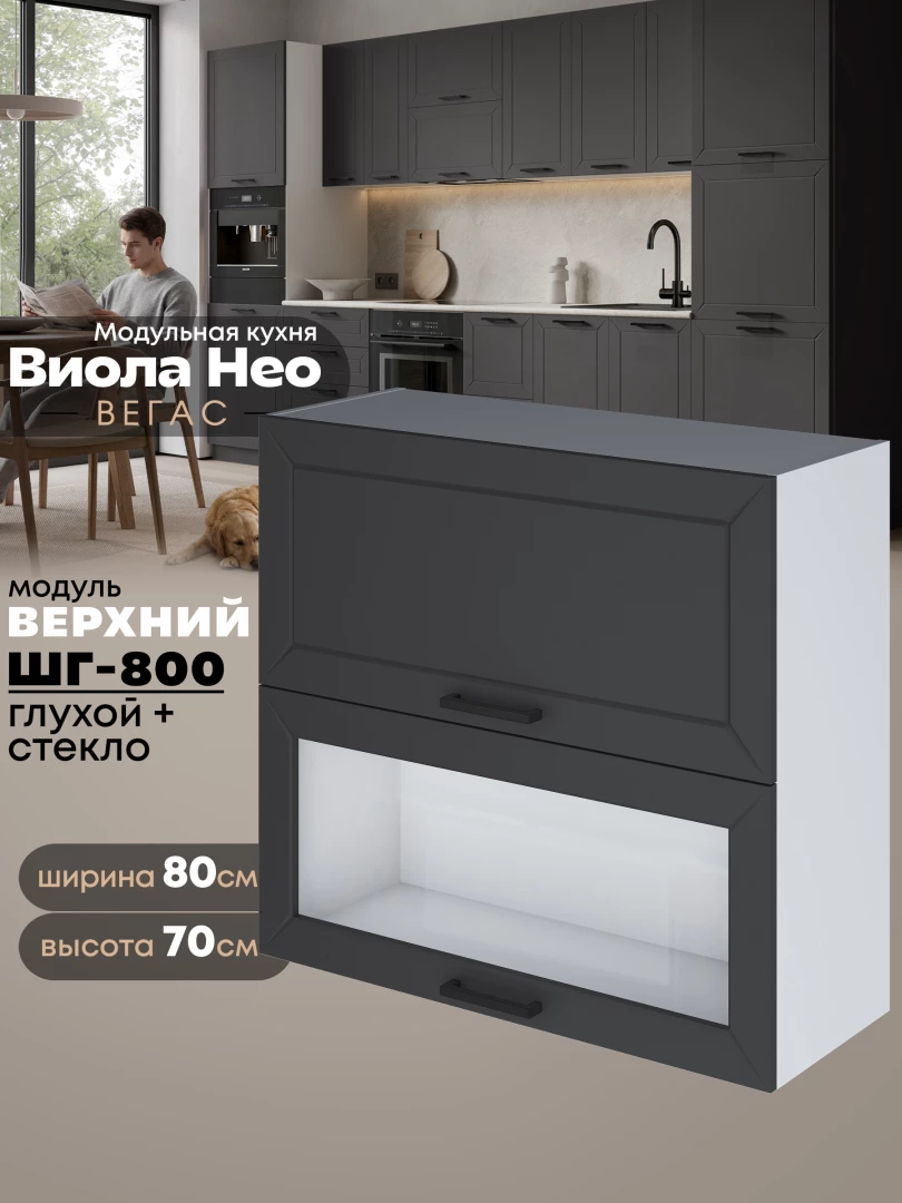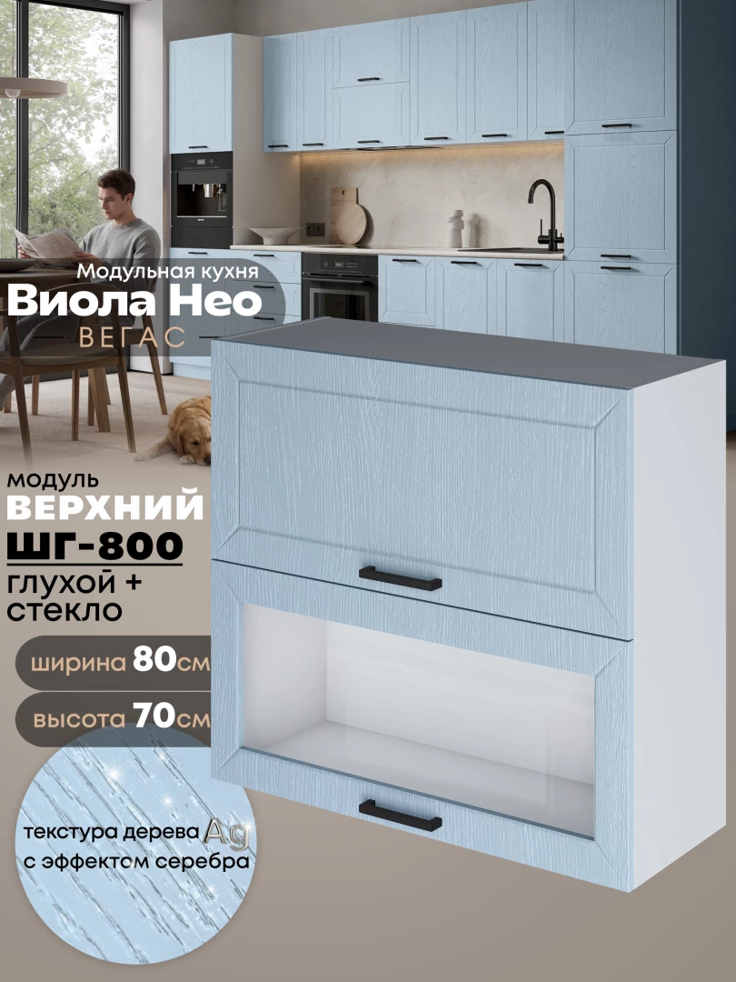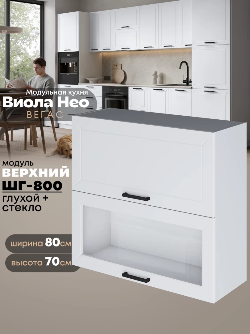 Кухонный модуль навесной с откидными створками Виола Нео Вегас ШГ-800 (глухой/стекло) Матовый