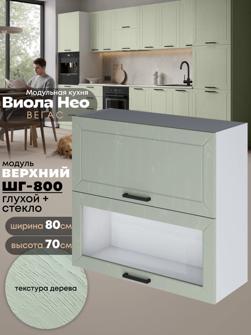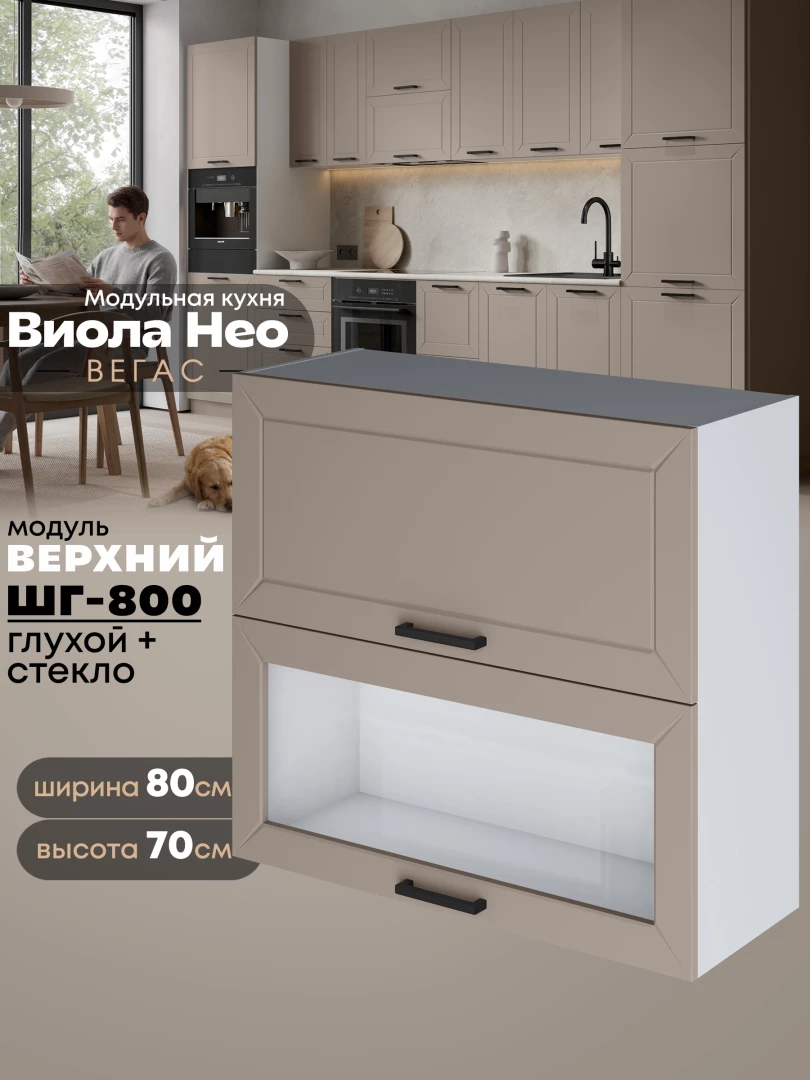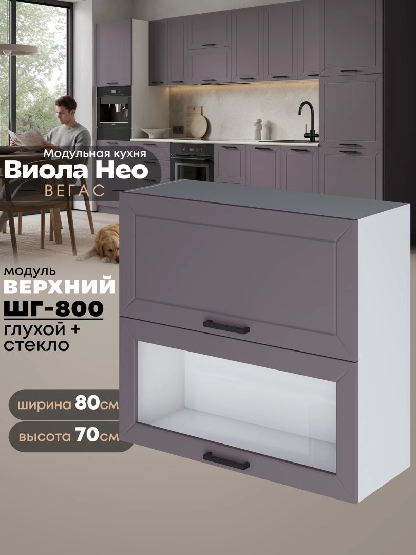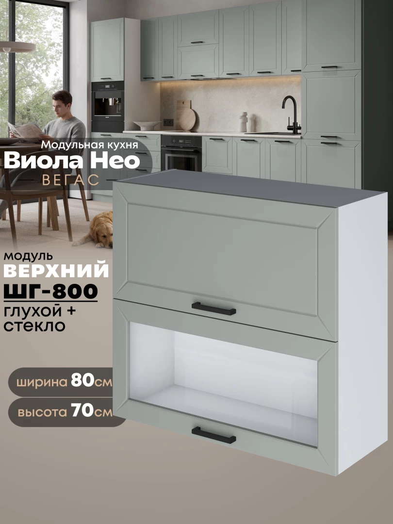 Кухонный модуль навесной с откидными створками Виола Нео Вегас ШГ-800 (глухой/стекло) Матовый