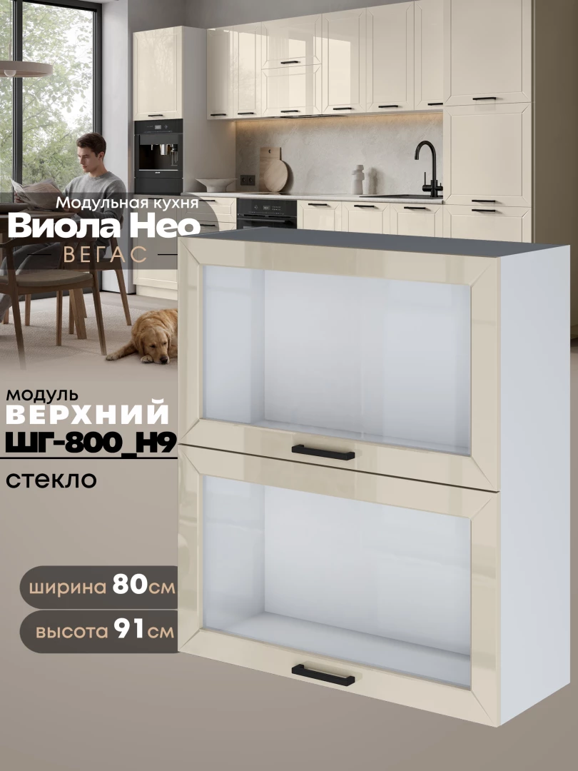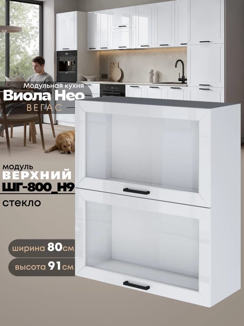 Кухонный модуль навесной с откидными створками Виола Нео Вегас ШГ-800(Н9)-стекло Глянцевый