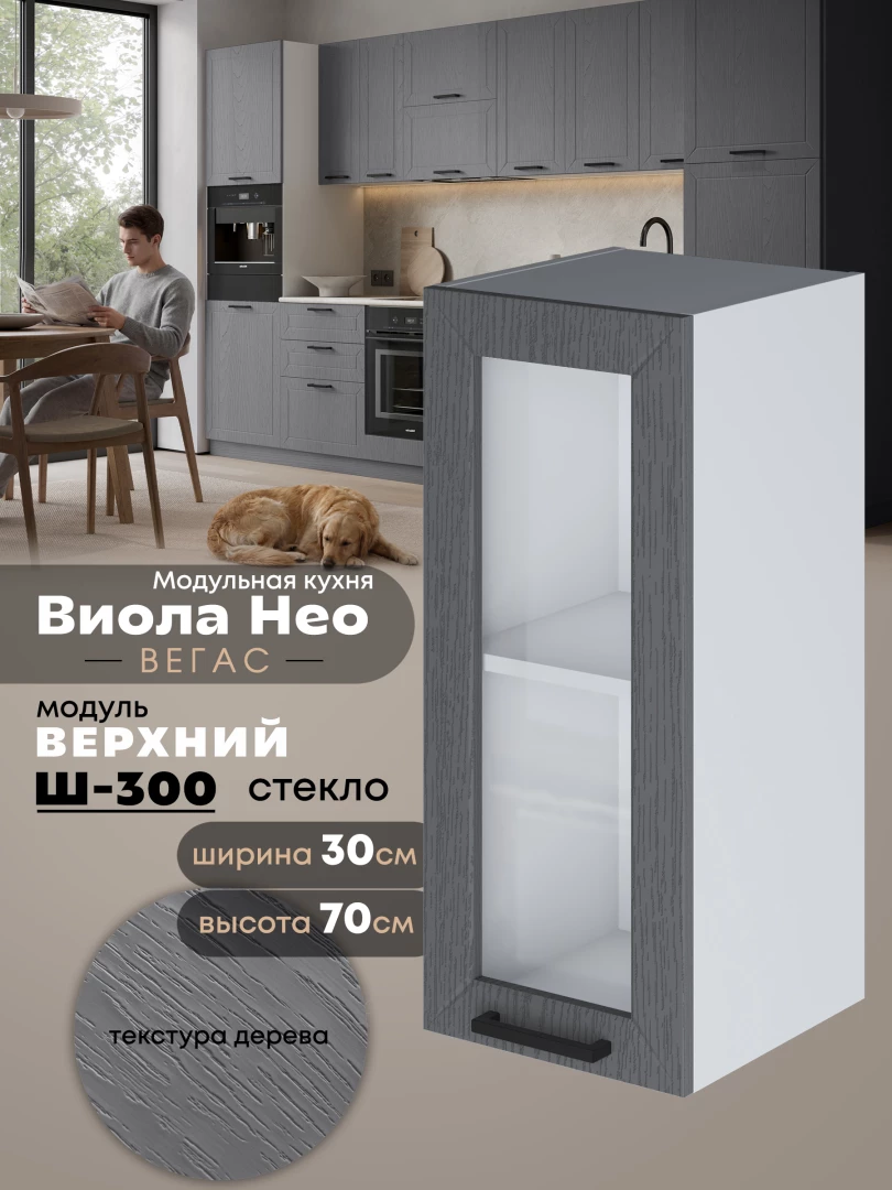Кухонный модуль навесной Виола Нео Вегас Ш-300-стекло Матовый