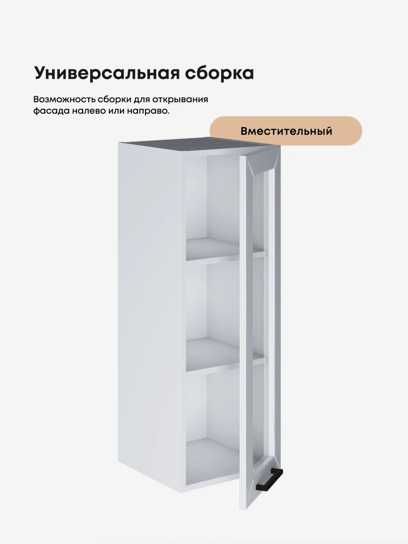 Петли позволяют крепить фасады на корпус шкафов. Качество используемой фурнитуры — гарантия долгой службы изделия. Петли и фурнитура нашей мебели обладают высоким запасом прочности и выдерживают значительные нагрузки, на протяжении всего срока эксплуатации.