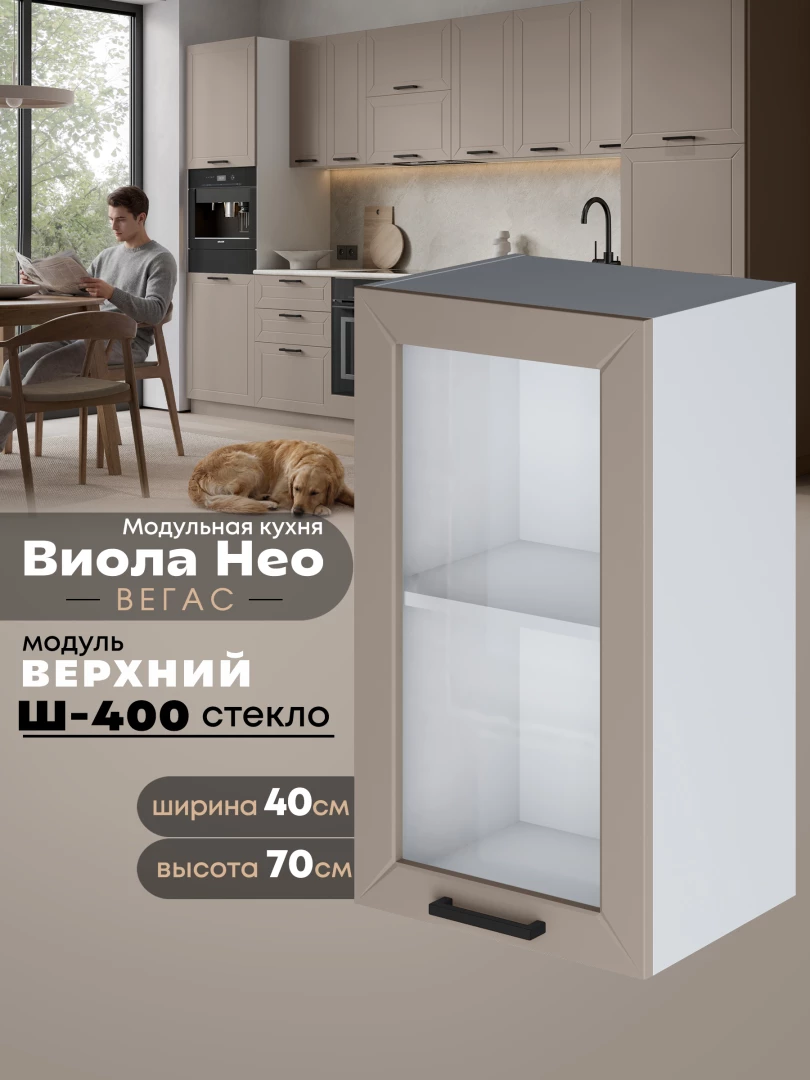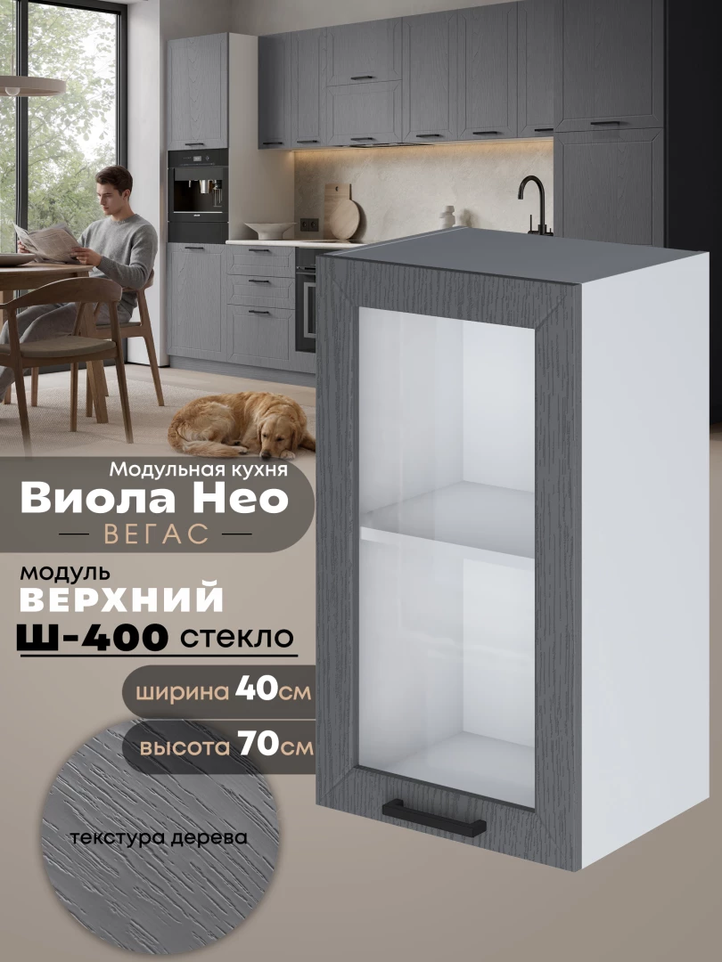 Кухонный модуль навесной Виола Нео Вегас Ш-400-стекло Матовый
