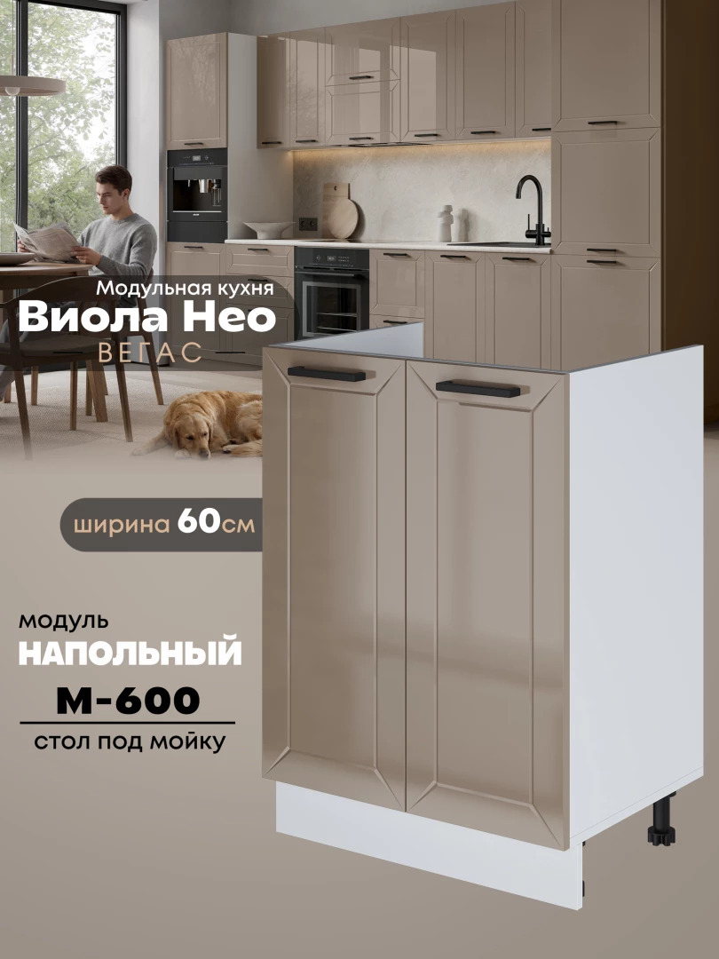 Кухонный модуль под мойку (с двумя створками) Виола Нео Вегас М-600 Глянцевый