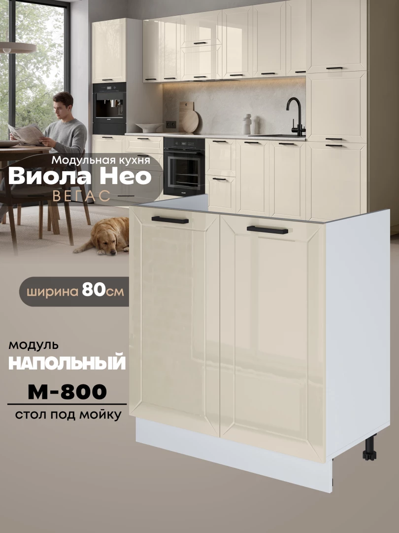 Кухонный модуль под мойку (с двумя створками) Виола Нео Вегас М-800 Глянцевый