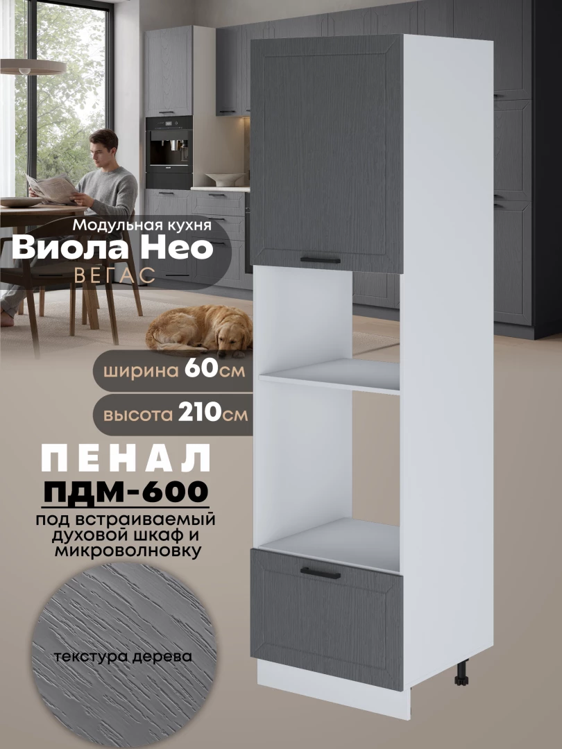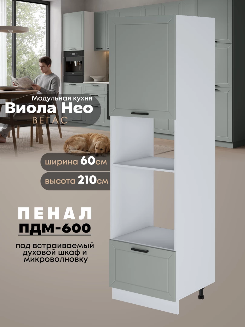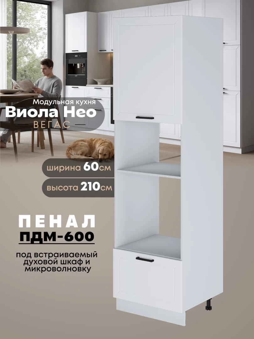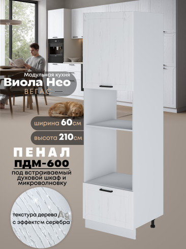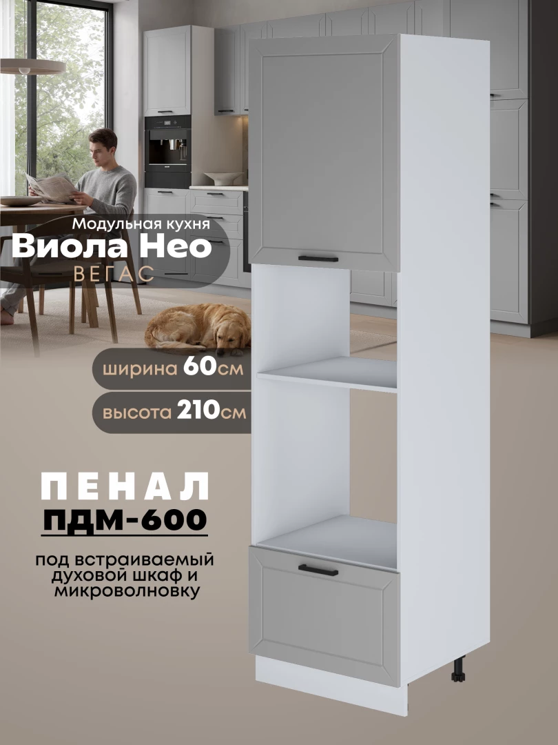 Шкаф-пенал для кухни с отделением под духовой шкаф и микроволновую печь Виола Нео Вегас ПДМ-600 Матовый