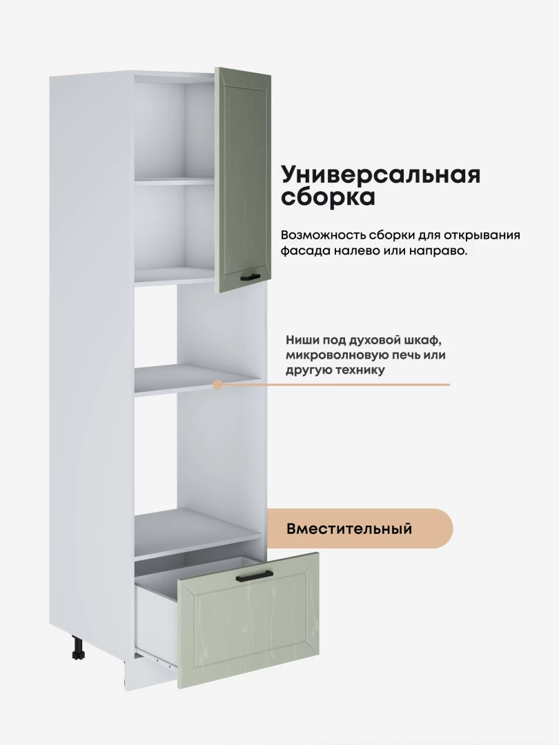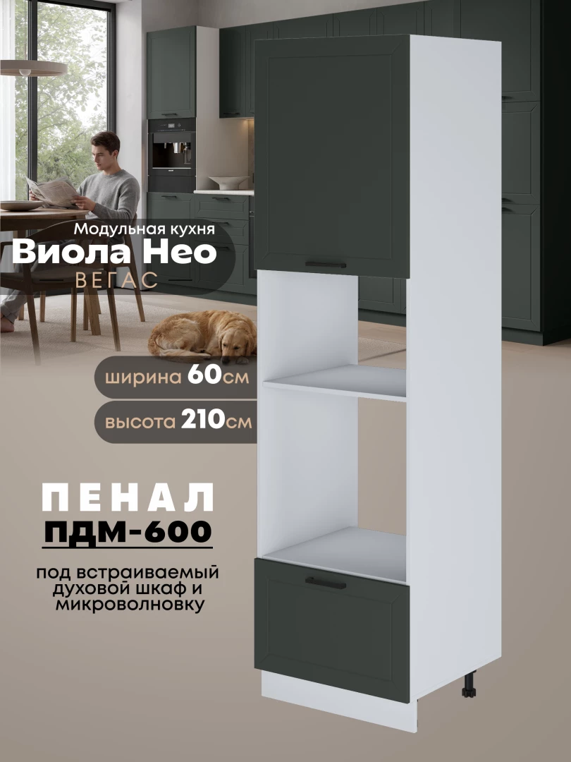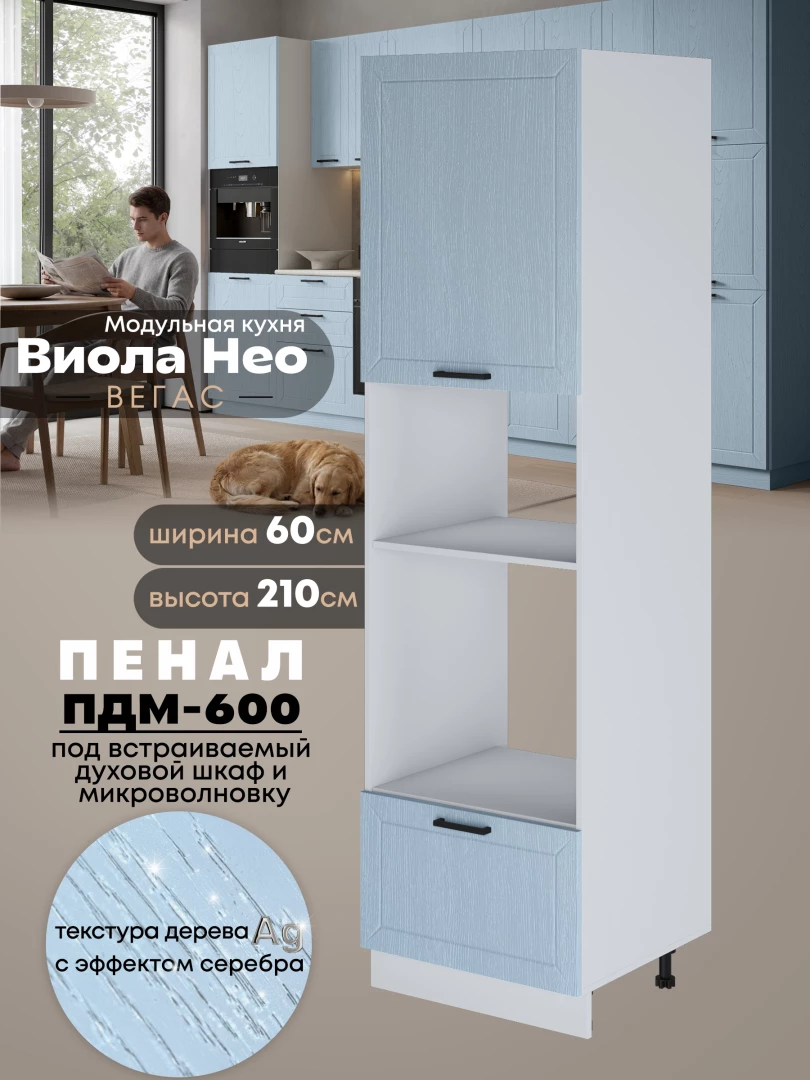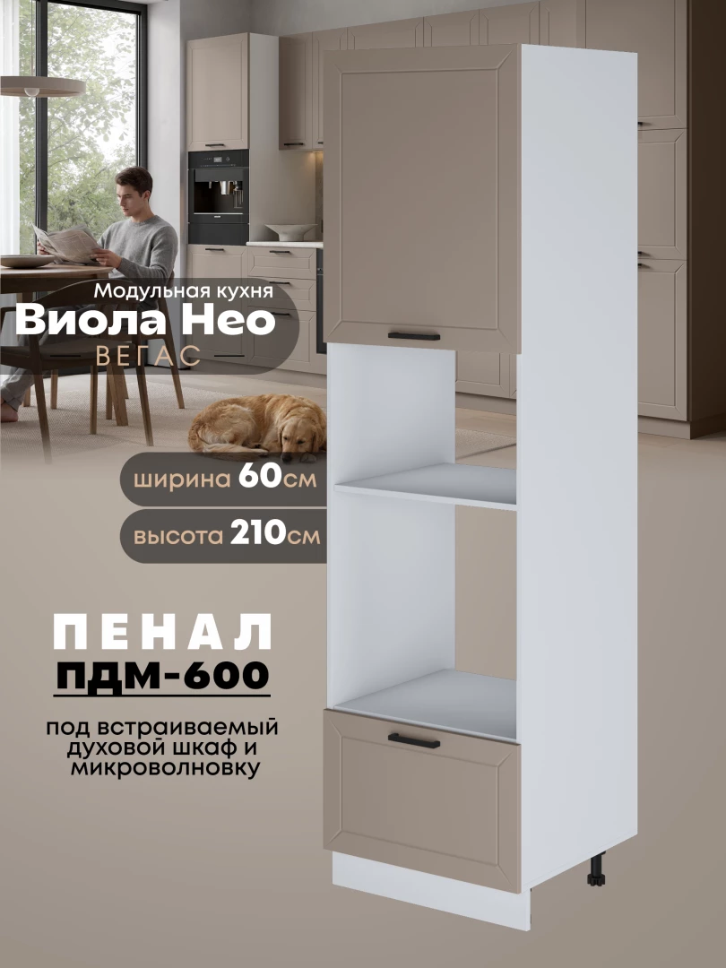 Шкаф-пенал для кухни с отделением под духовой шкаф и микроволновую печь Виола Нео Вегас ПДМ-600 Матовый