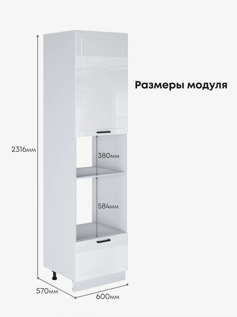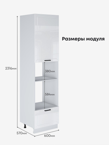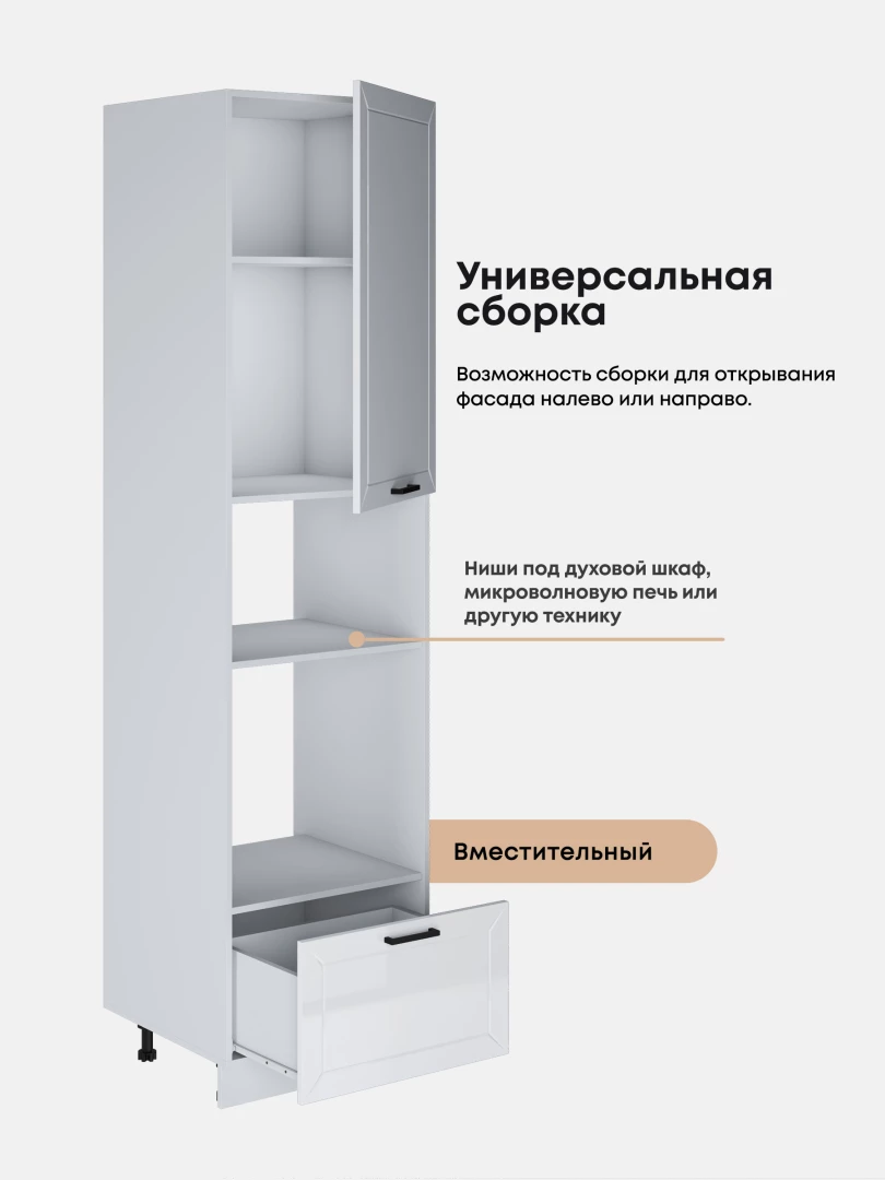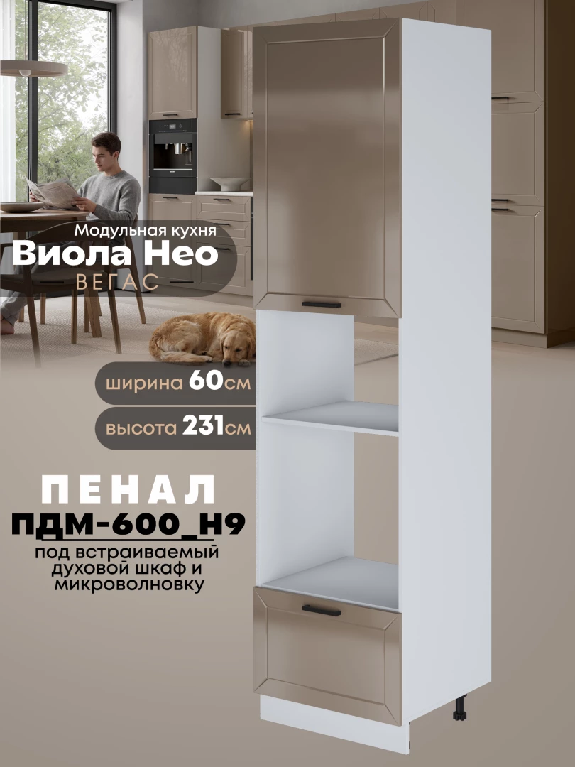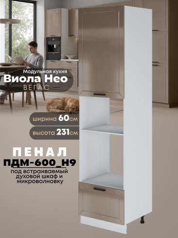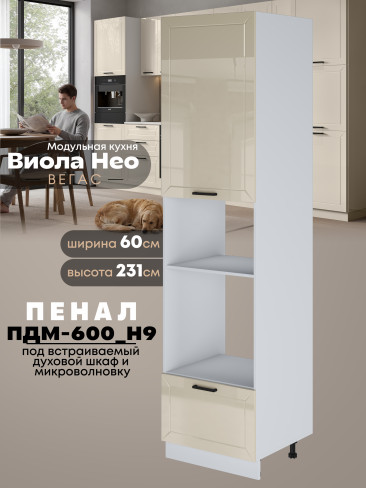 Шкаф-пенал для кухни с отделением под духовой шкаф и микроволновую печь Виола Нео Вегас ПДМ-600 (Н9) Глянцевый