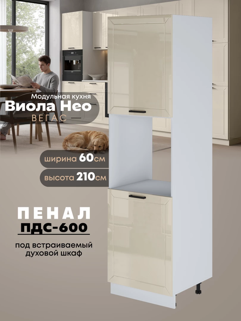 Шкаф-пенал для кухни с отделением под духовой шкаф Виола Нео Вегас ПДС-600 Глянцевый