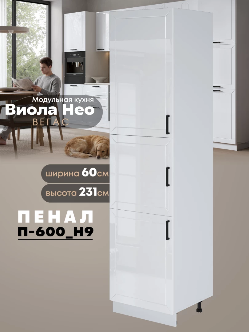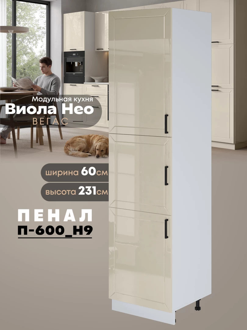 Шкаф-пенал для кухни Виола Нео Вегас П-600 (Н9) Глянцевый