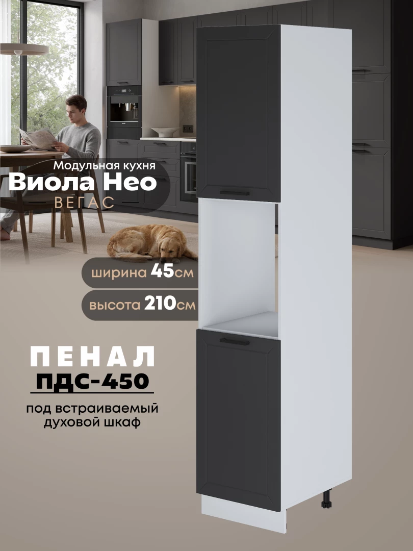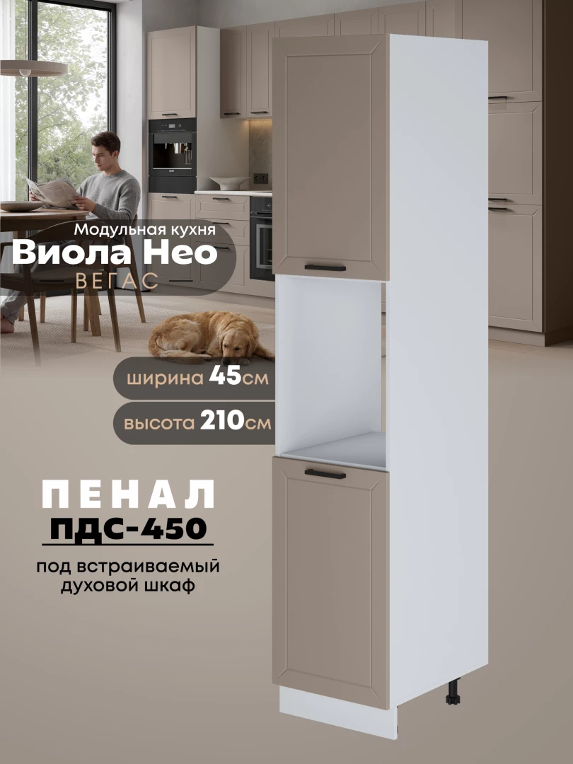 Шкаф-пенал для кухни с отделением под духовой шкаф Виола Нео Вегас ПДС-450 Матовый