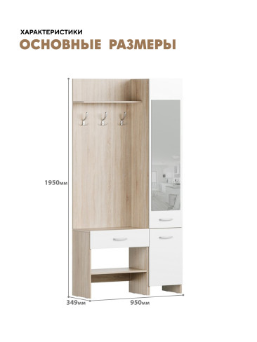 Габаритный размер (ШхВхГ): 950х1950х349 мм.