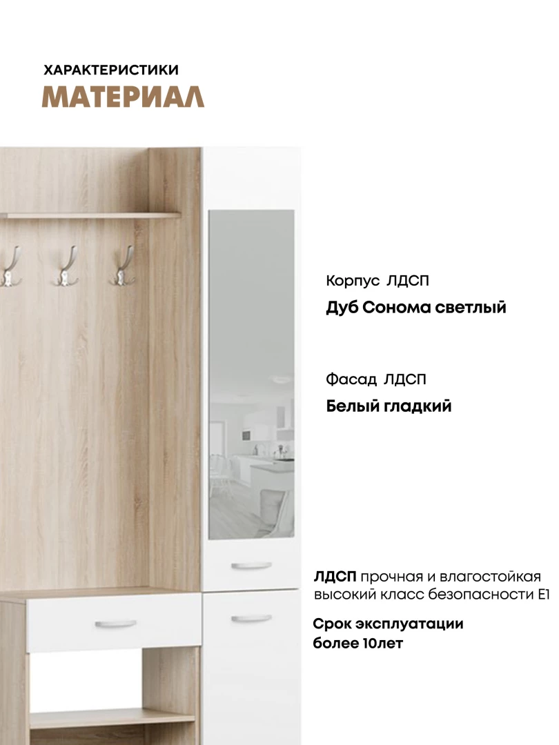 • Прочная и влагостойкая ЛДСП, высокий класс безопасности E1