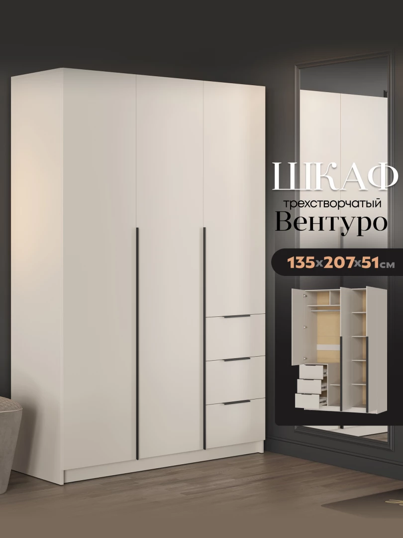 ВЕНТУРО Шкаф ШК-002 (3-ств, с ящиками) - Стильное и функциональное решение для вашего дома