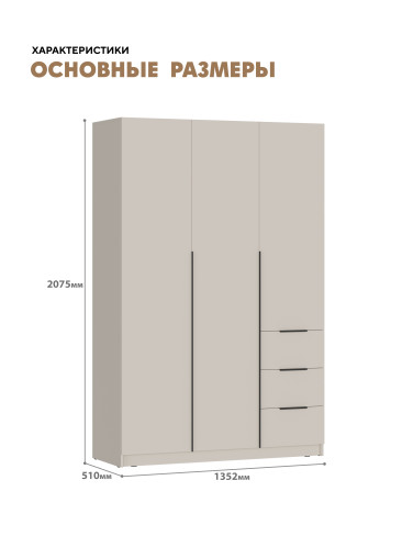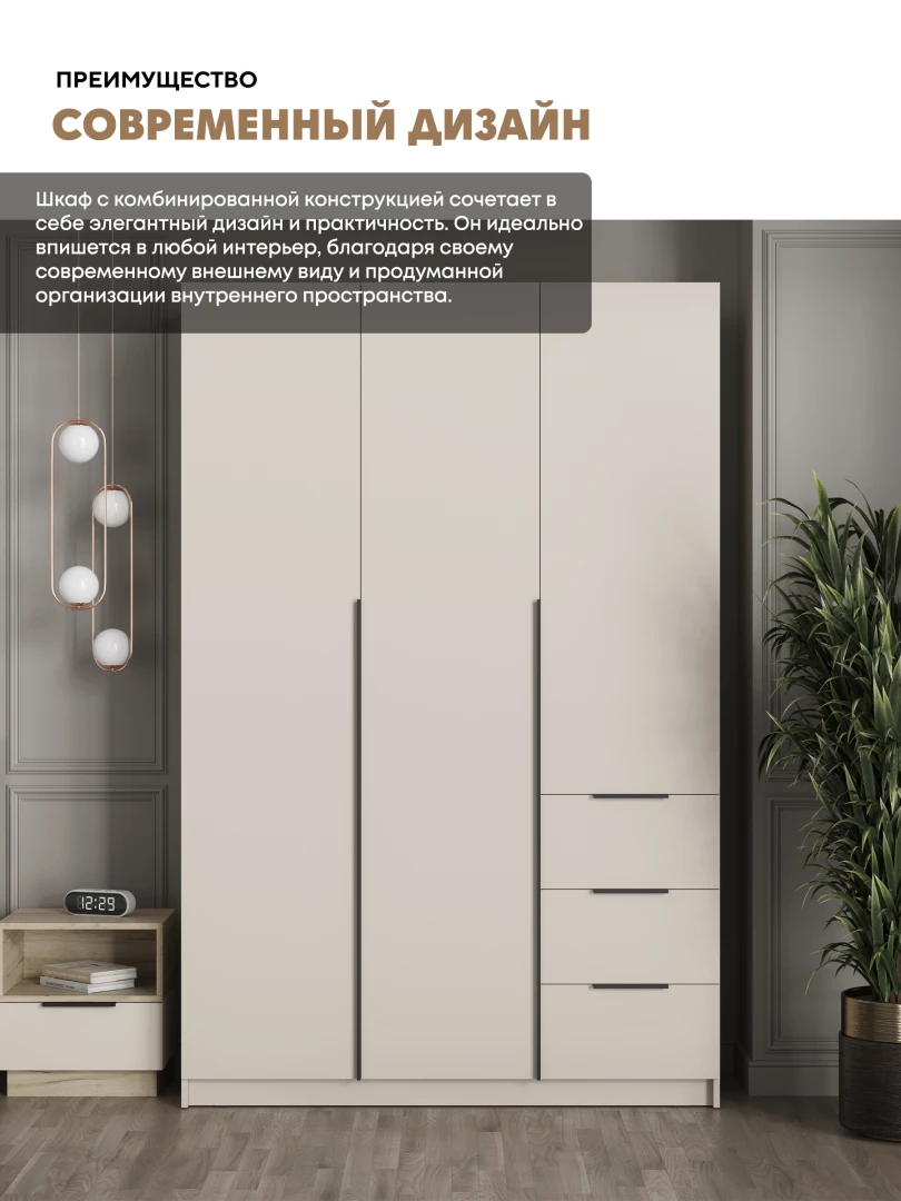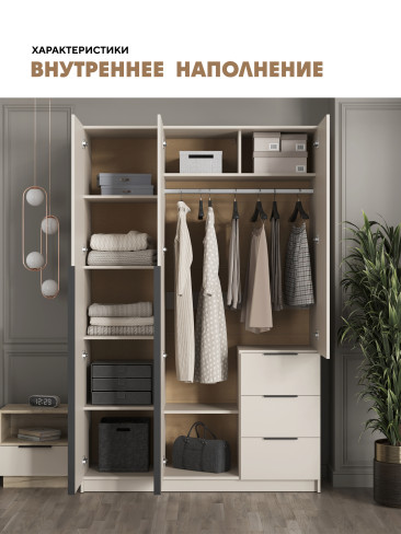 Ищете вместительный и современный шкаф для хранения одежды и вещей? ВЕНТУРО ШК-002 - это комбинированное решение, сочетающее в себе три створки и три выдвижных ящика, обеспечивая оптимальную организацию пространства.