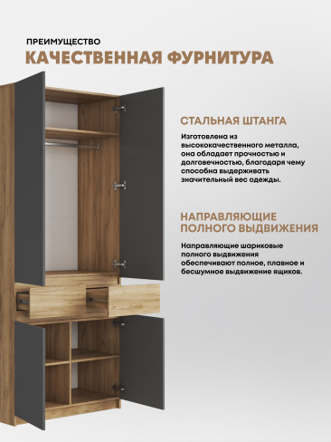 Шкаф распашной 2х створчатый с ящиками "Бостон"