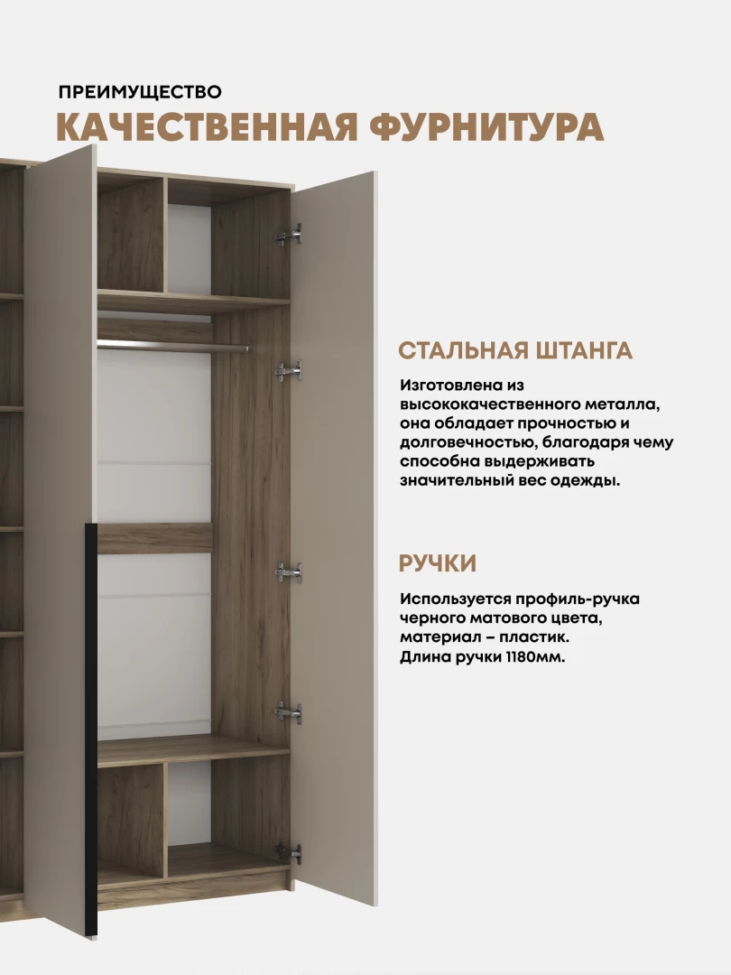 Распашной шкаф Бохо позволит аккуратно развесить одежду любой длины. На антресольных полках можно разместить сезонные вещи, а внизу — коробки с обувью. В дизайне нет лишних деталей, поэтому модель отлично сочетается с разными стилями меблировки. Характеристики: • Материал: ЛДСП 16 мм. • Материал ручек: пластик. • Тип штанги: продольная. • Требуется крепление к стене. Крепежи входят в комплект. • Ориентация сборки: только так, как показано на изображении. Габаритный размер (ШхВхГ): 1525х2360х510 мм.