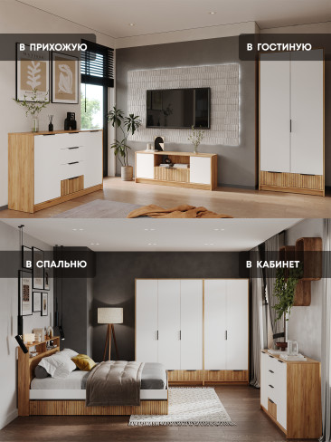 Цветовая гамма: Дуб Крафт золотой + Белый (Гладкий).