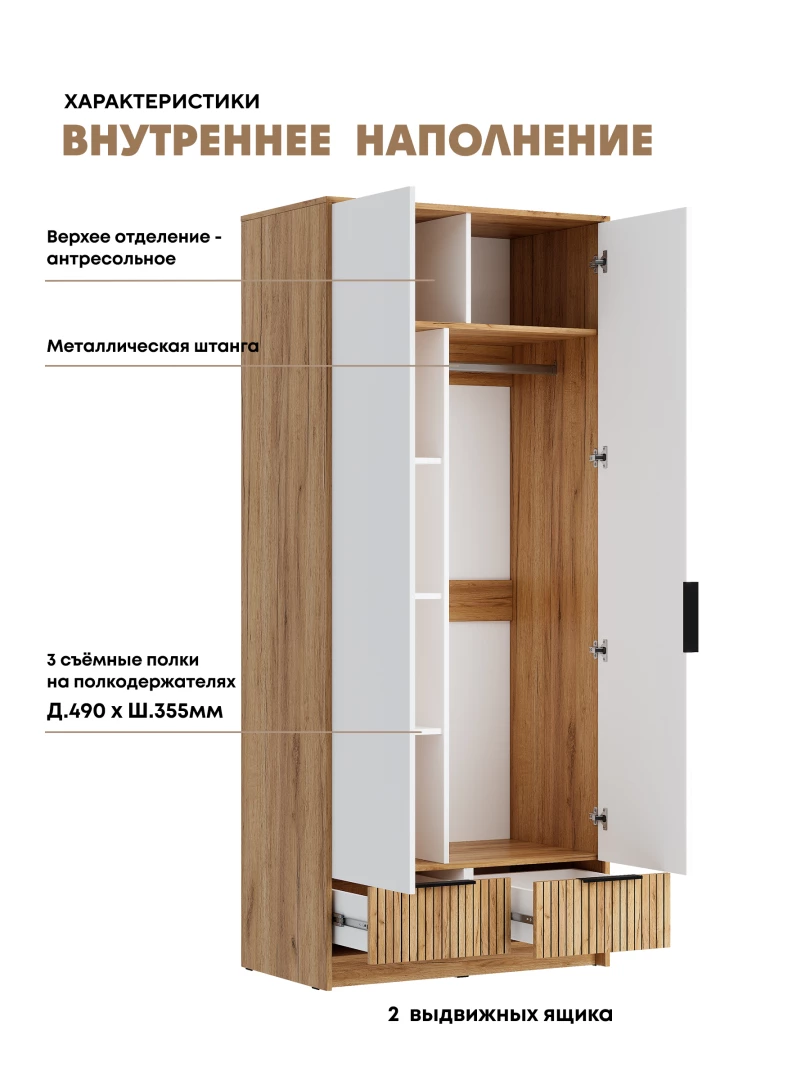 Шкаф ИВИС ШК-002 — это идеальное сочетание продуманного дизайна, надежности и вместительности. Он создан, чтобы обеспечивать удобный доступ к вещам и поддерживая порядок в комнате.