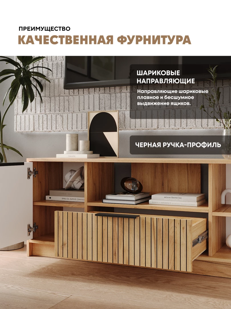 Направляющие полного выдвижения обеспечивают плавное и бесшумное выдвижение ящика, при котором он полностью выезжает из каркаса мебели.