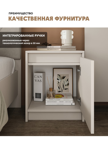 Тумба для кровати оснащена удобным отделением — тумба прикроватная с дверцей позволяет аккуратно хранить вещи и поддерживать порядок. Благодаря продуманной конструкции, она подходит как для небольших, так и для просторных помещений.