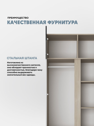 Хромированная штанга фиксируется внутри шкафа при помощи фланцев и выдерживает значительный вес, выполняя функции хранения одежды. При небольшой глубине шкафа (до 55 см.) наиболее удобна выдвижная штанга (микролифт).