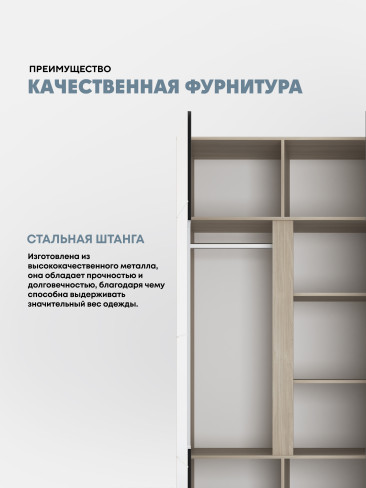 Петли позволяют крепить фасады на корпус шкафов. Качество используемой фурнитуры — гарантия долгой службы изделия. Петли и фурнитура нашей мебели обладают высоким запасом прочности и выдерживают значительные нагрузки, на протяжении всего срока эксплуатации.