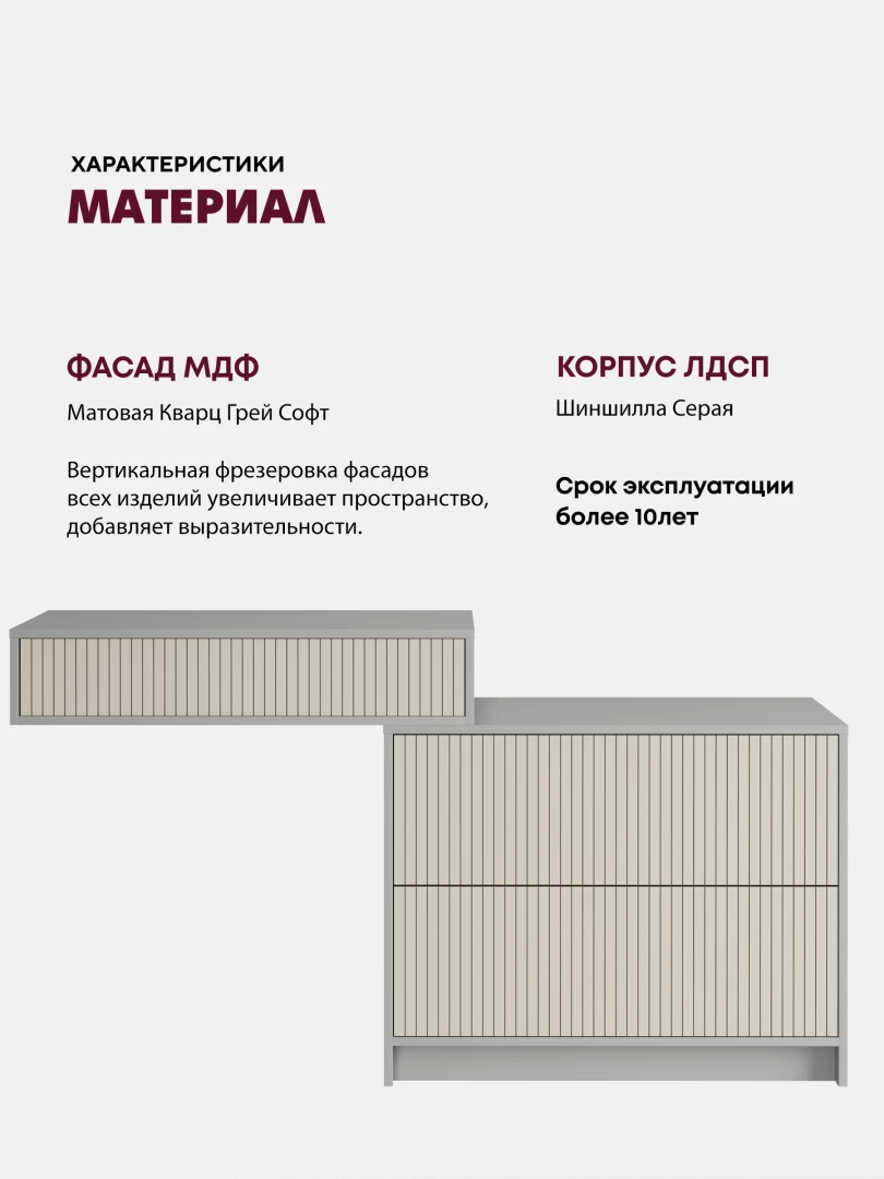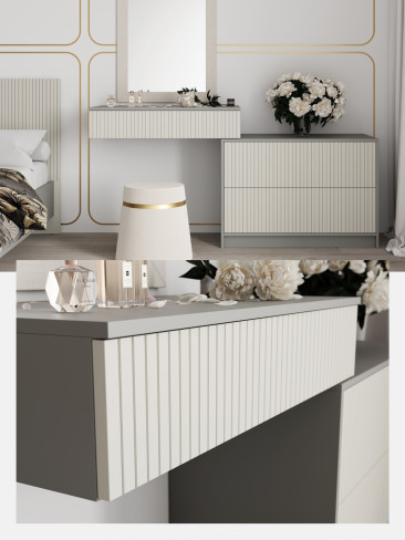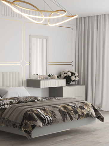 Селена это - элегантная спальня в светлых тонах, её актуальные цвета подходят под большинство интерьерных решений. Фасады из МДФ с высоким уровнем устойчивости к влаге и механическим повреждениям. Вертикальная фрезеровка фасадов всех изделий увеличивает пространство, добавляет выразительности.