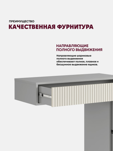 Направляющие полного выдвижения обеспечивают плавное и бесшумное выдвижение ящика, при котором он полностью выезжает из каркаса мебели.
