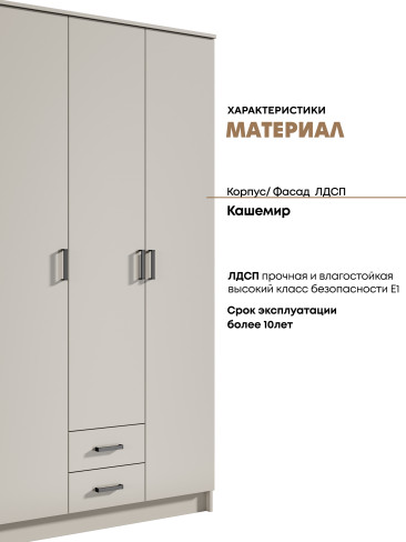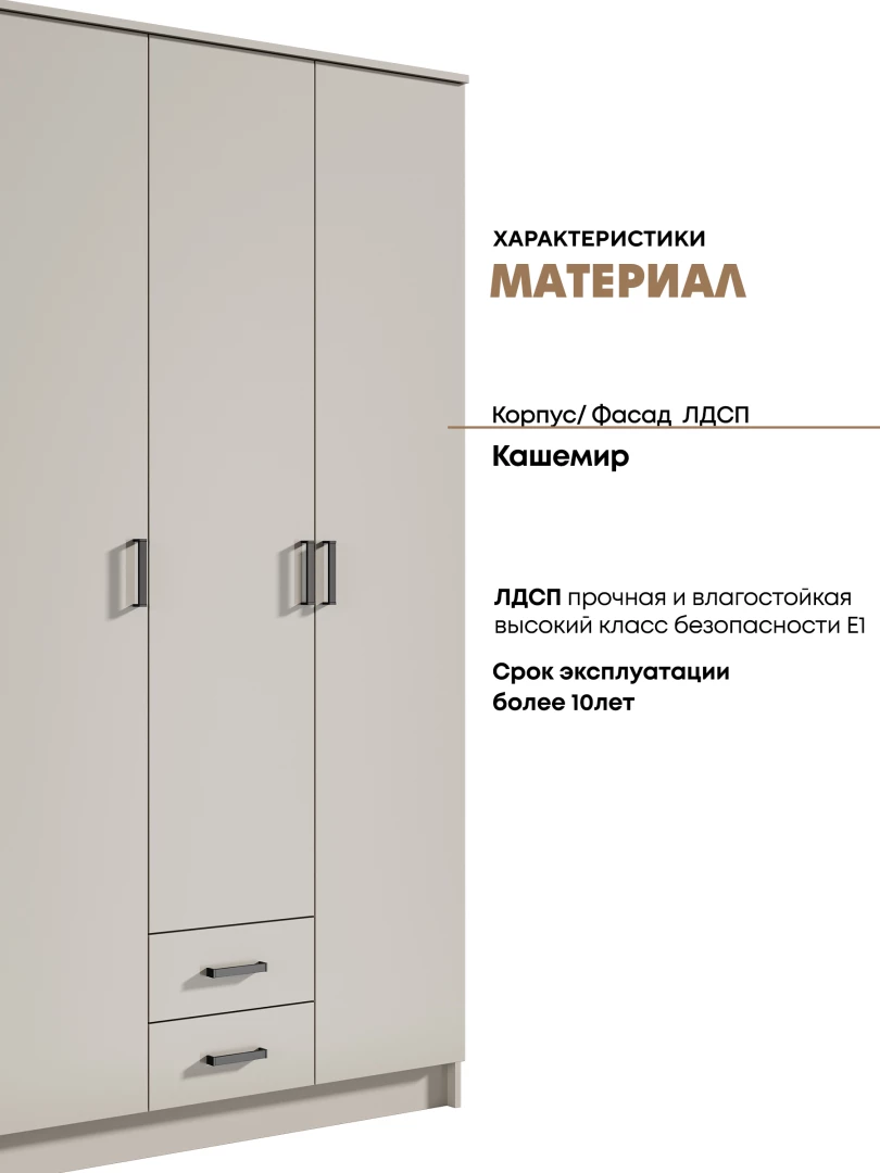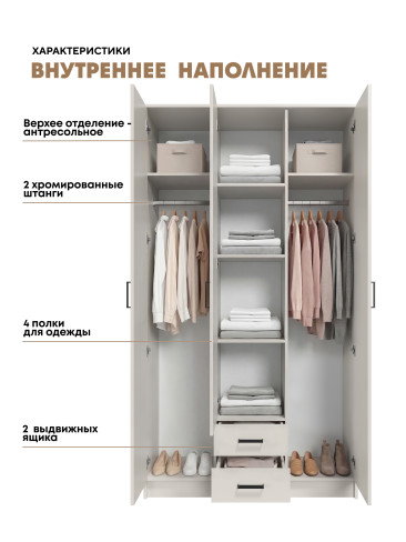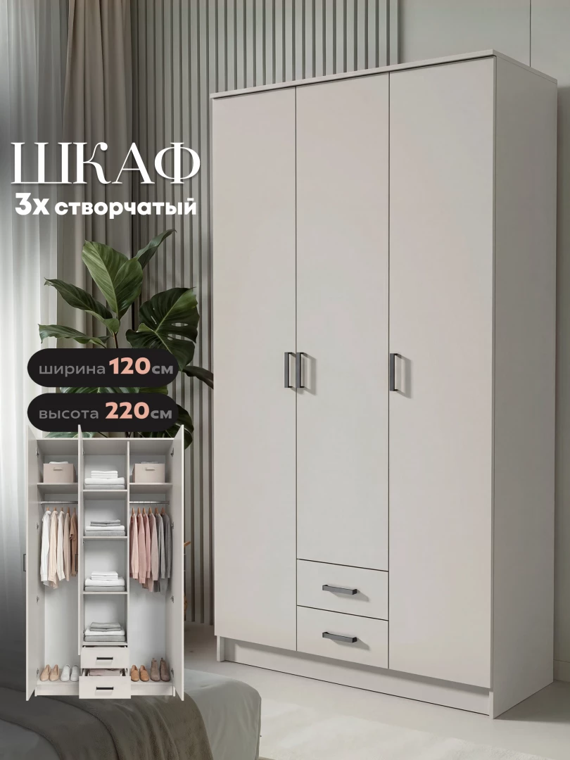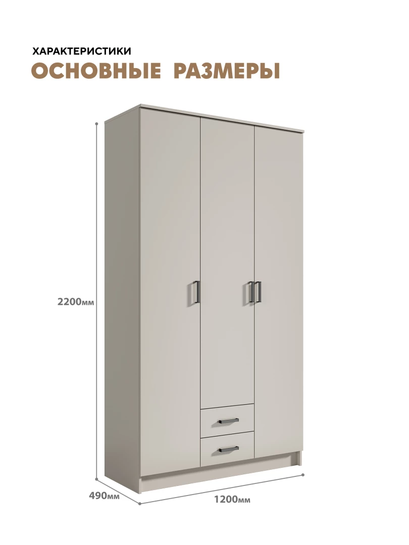 Шкаф для одежды, распашной трехстворчатый, 120х220 см, Кашемир